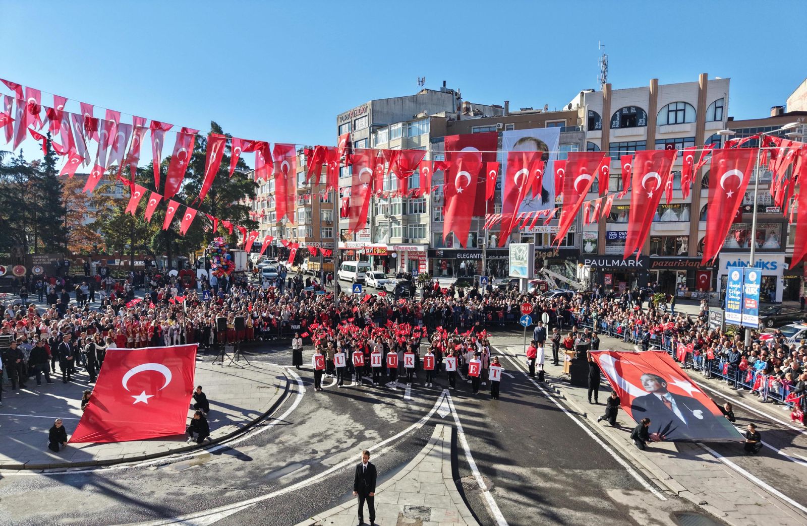 Çorlu’daki kutlamalar Atatürk Meydanı'nda gerçekleştirildi. Kutlamalara yoğun ilgi gösteren vatandaşlara belediye tarafından Türk bayrakları dağıtıldı.