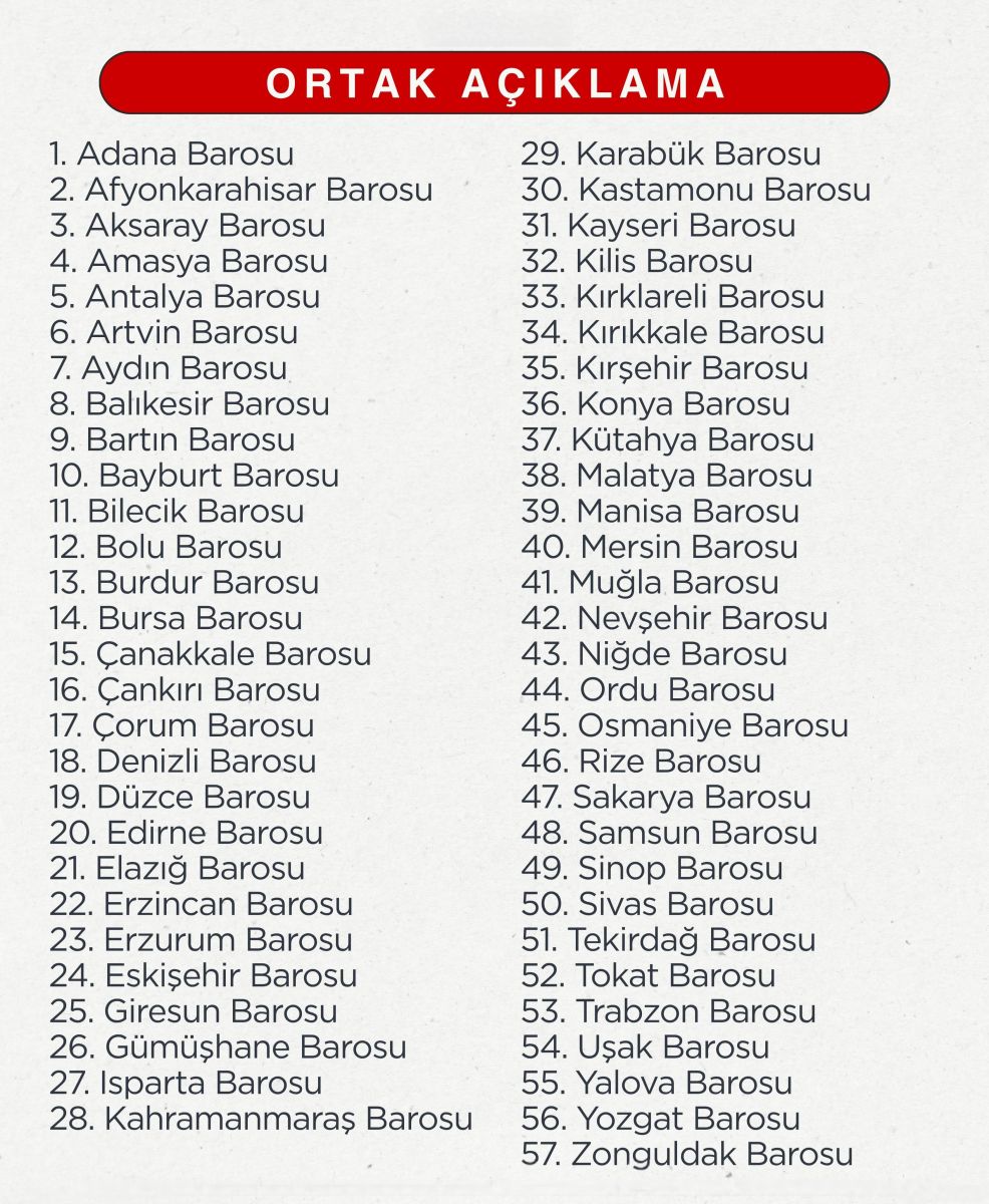 Bu anlayışla, barış içinde, özgür ve güvenli bir toplum hedefi doğrultusunda, hukuka ve adaletin evrensel ilkelerine bağlı duruşumuzu kararlılıkla sürdüreceğimizi bir kez daha vurguluyoruz.” (Basın Bülteni)
