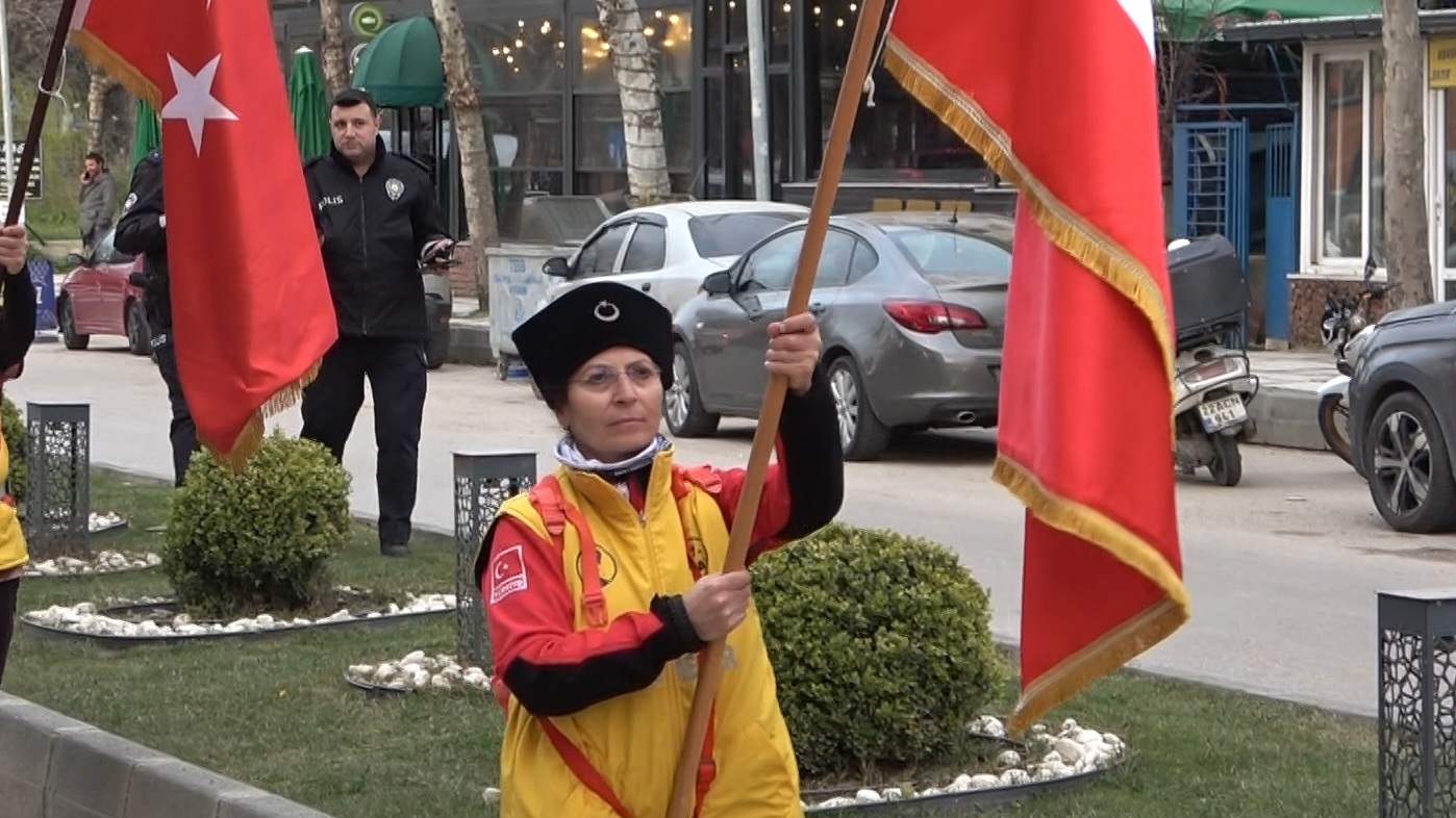 Çanakkale Deniz Zaferi'nin 111’inci yıl dönümü dolayısıyla 18 Mart Çarşamba günü düzenlenecek törene katılmak üzere 57'nci Alay Şehitliği'ne yürüyen gaziler, öğrenciler ve STK temsilcilerinden oluşan 57 kişilik grup, 235 kilometrelik yürüyüş için Tekirdağ Valiliği önünden 2 gün önce yola çıktı.