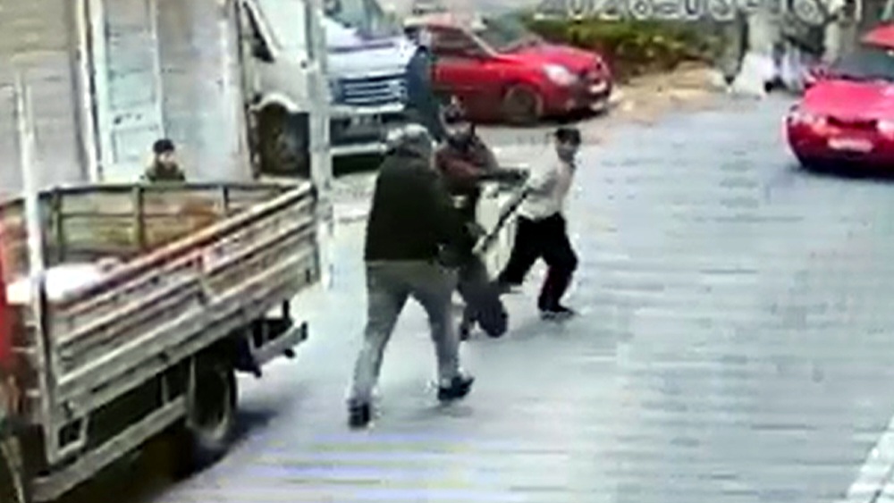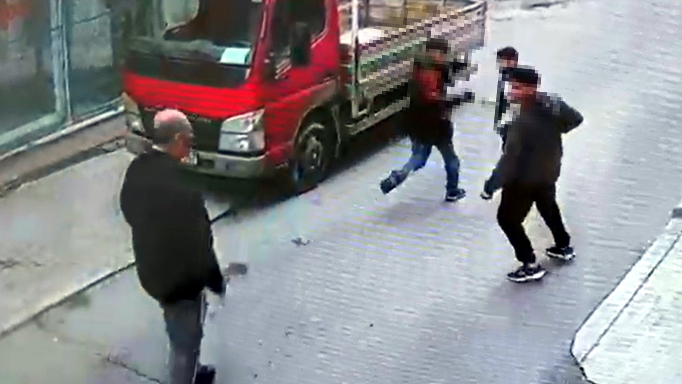 Çevredeki iş yerinin güvenlik kamerasına da yansıyan olayla ilgili polis inceleme başlattı. (DHA)
