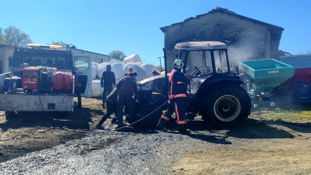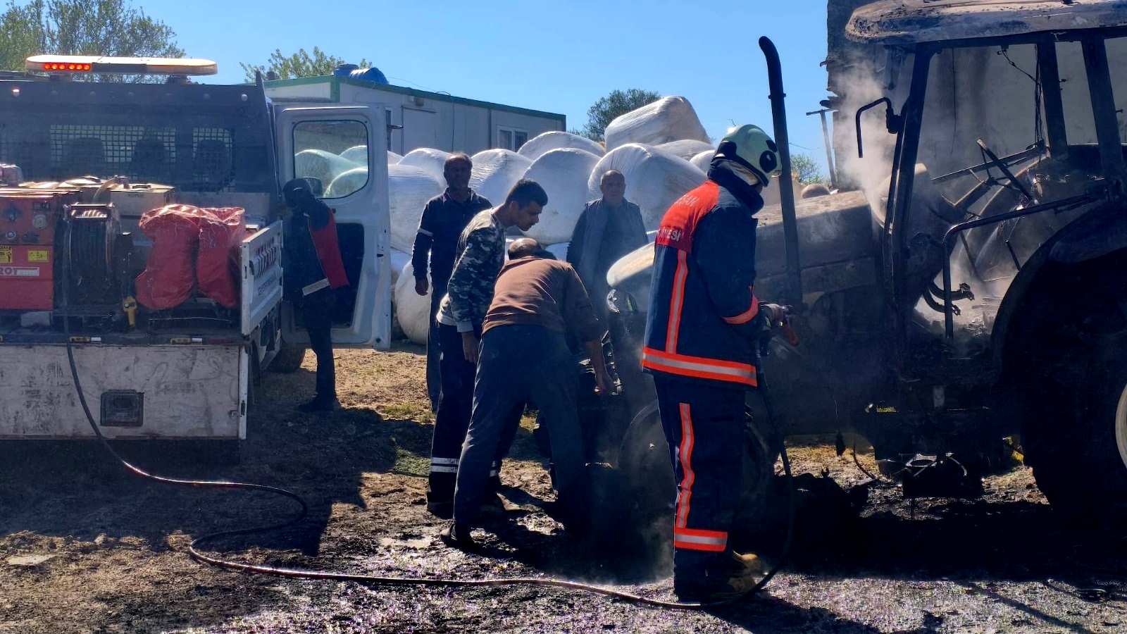 Yangın, itfaiye ekiplerinin müdahalesi sonucu söndürülürken, traktör kullanılamaz hale geldi.