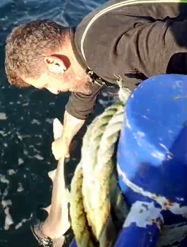 Püsküllü, balığı fark edip, hemen canlı şekilde denize bıraktı.