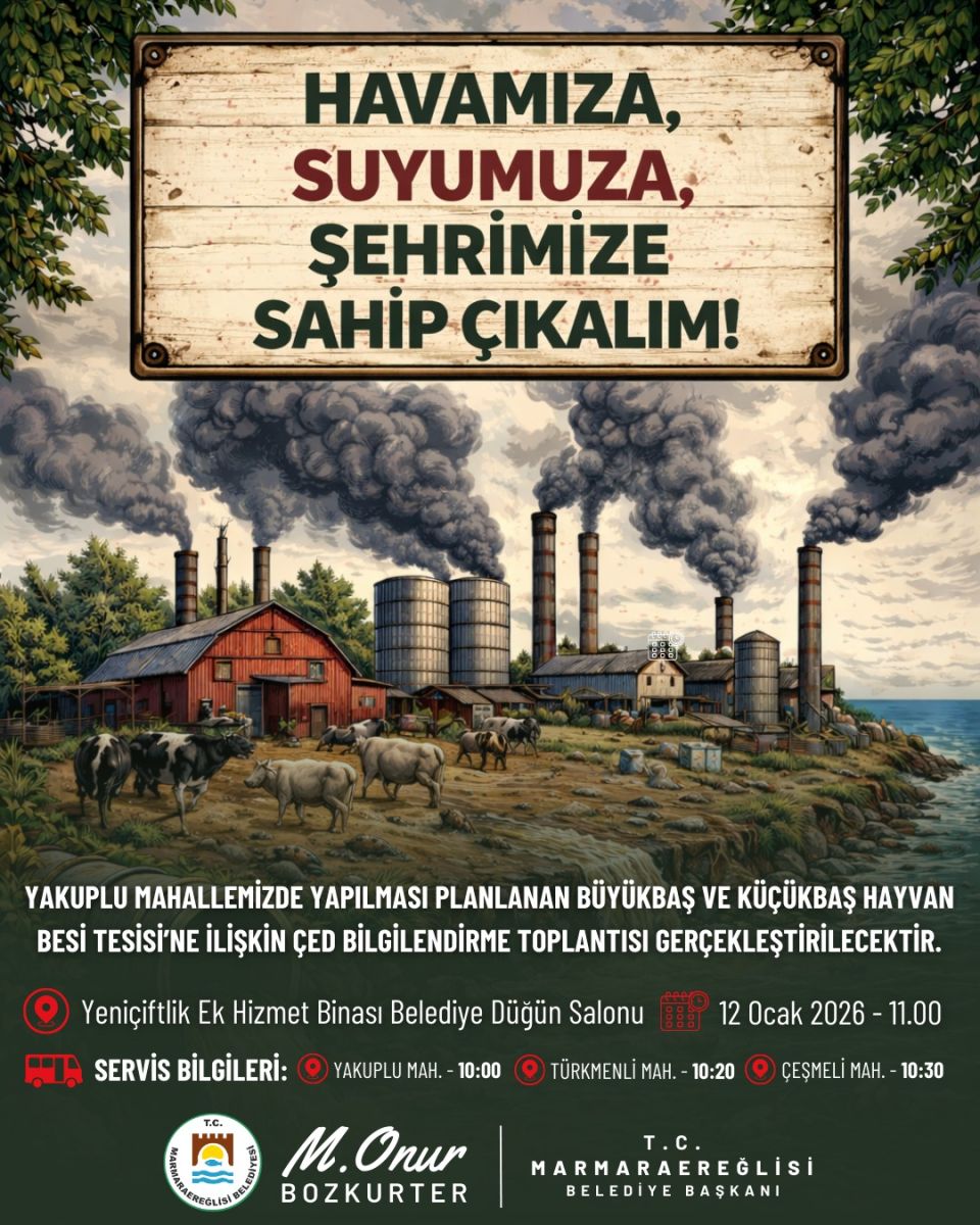 Başkan Bozkurter sosyal ve dijital medya hesaplarından yaptığı çağrıda, “Yakuplu Mahallemizde yapılması planlanan Büyükbaş ve Küçükbaş Hayvan Besi Tesisi’ne ilişkin ÇED Bilgilendirme Toplantısı gerçekleştirilecektir.