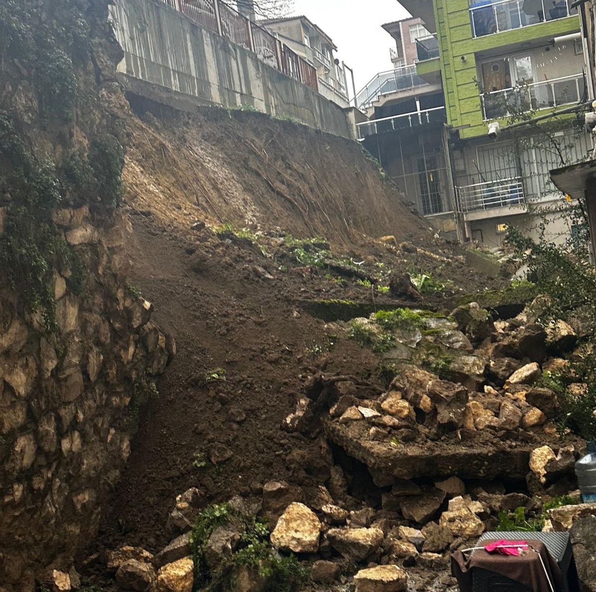 Kentte dün sağanak yağış etkili olurken, Medrese Alibey Mahallesi’nin Aşiyan Bayırı mevkiinde akşam saatlerinde bir apartmanın bahçesinin istinat duvarı büyük gürültüyle çöktü. Apartmandaki iki evin balkonu hasar görürken, ihbar üzerine bölgeye polis, sağlık, AFAD ve itfaiye ekipleri sevk edildi. Ekipler, olay yerinde incelemelerde bulundu.