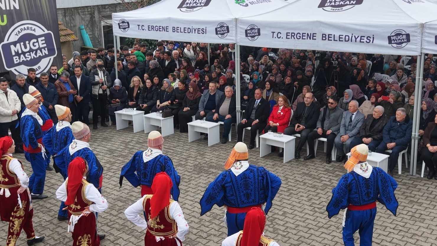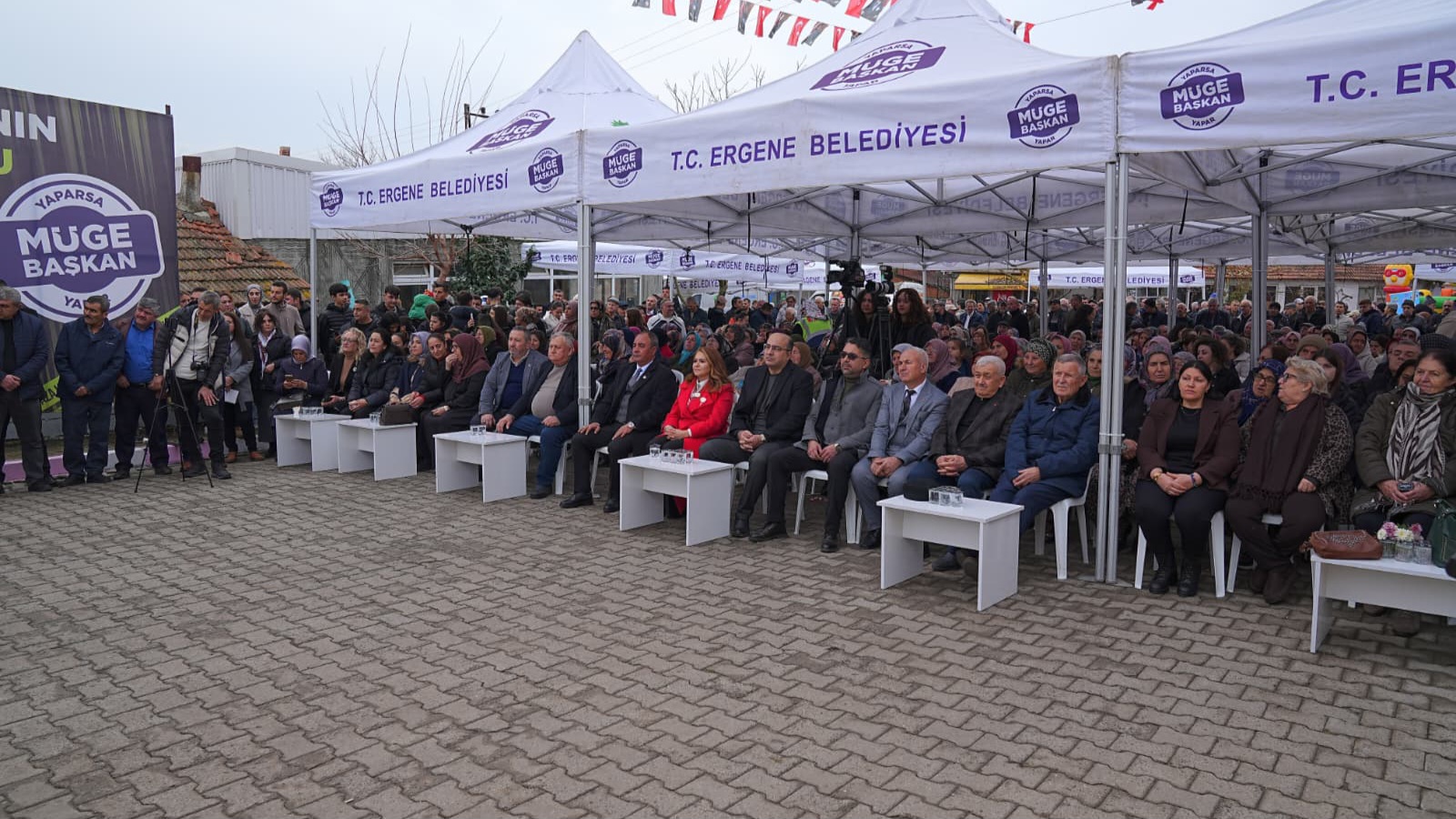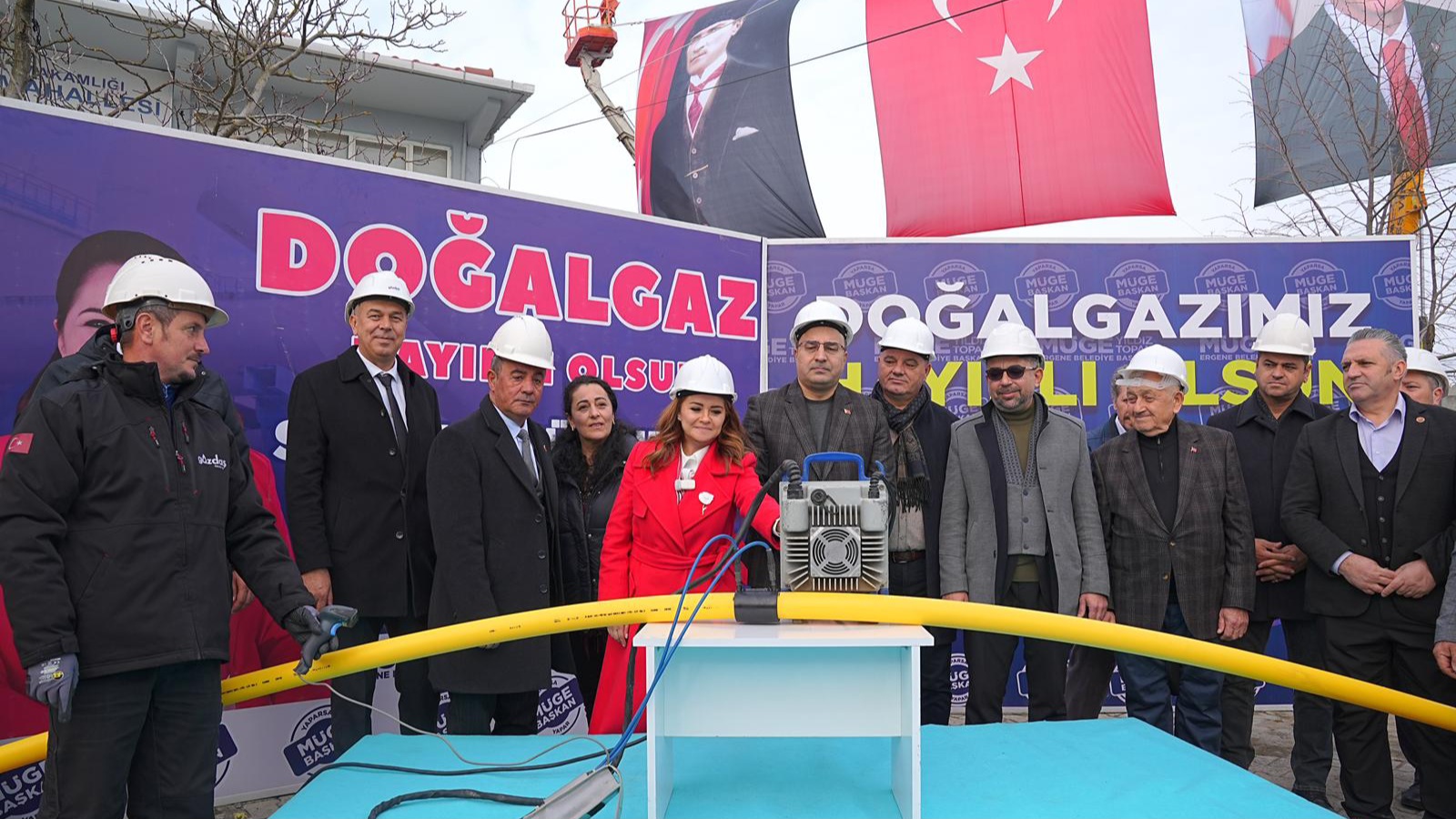 Ergene Belediye Başkanı Müge Yıldız Topak, Paşaköy ve Pınarbaşı Mahalleleri doğalgaz temek atma töreninde verdiği Bakırca Mahallesine doğalgaz sözünü tuttu.