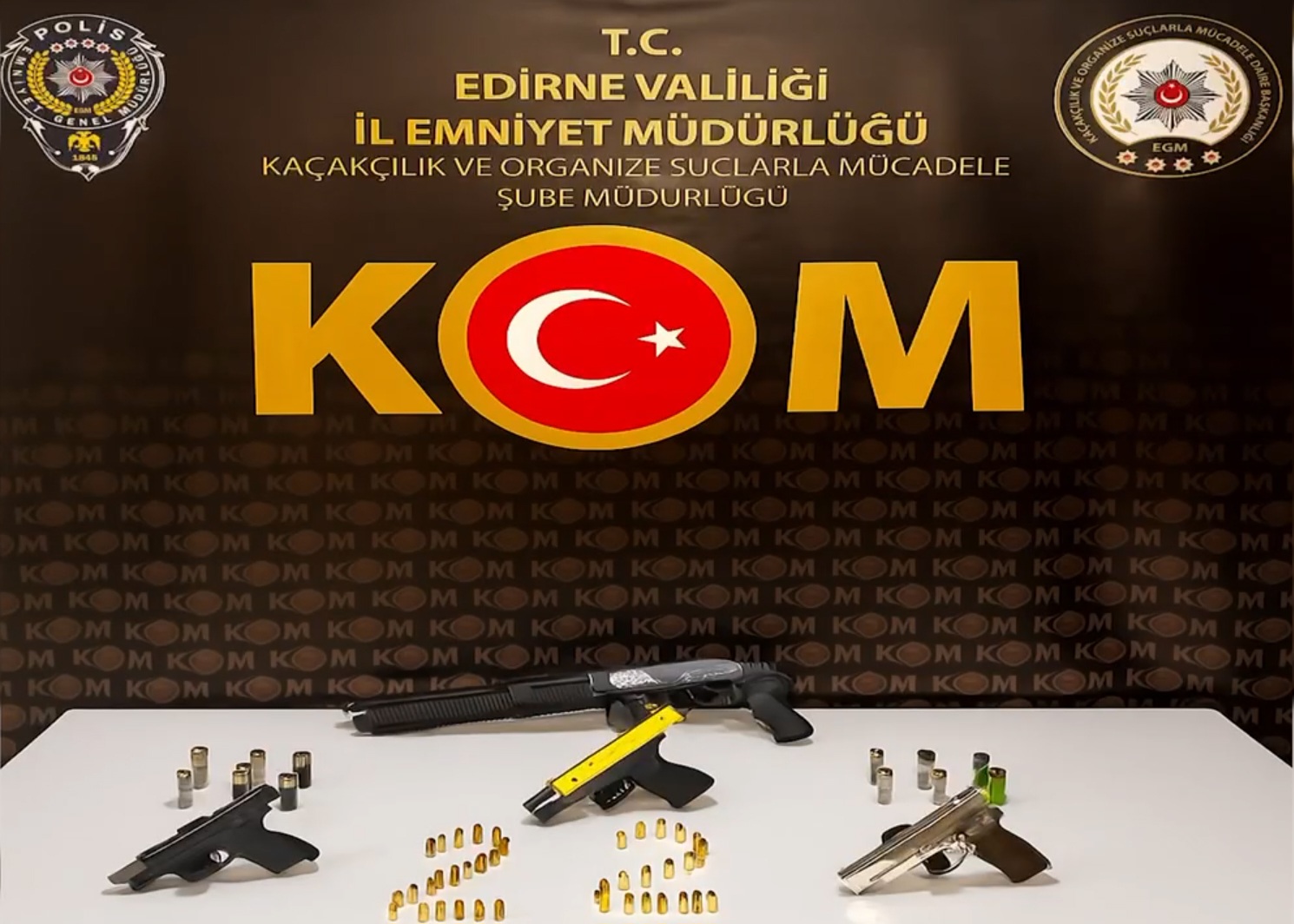 Edirne İl Emniyet Müdürlüğü Kaçakçılık ve Organize Suçlarla Mücadele Şube Müdürlüğü ekipleri, silah kaçakçılığına yönelik çalışmalar kapsamında kent merkezindeki 1 eve operasyon düzenledi.