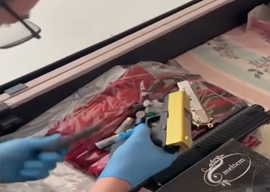 Ekiplerin evdeki aramasında, yatak odasındaki bazanın içinde ruhsatsız 3 tabanca, 1 pompalı tüfek, 42 mermi ve 13 fişek ele geçirildi.