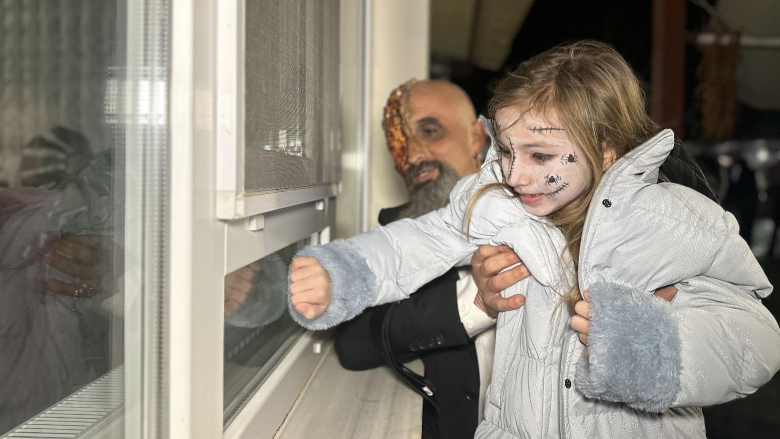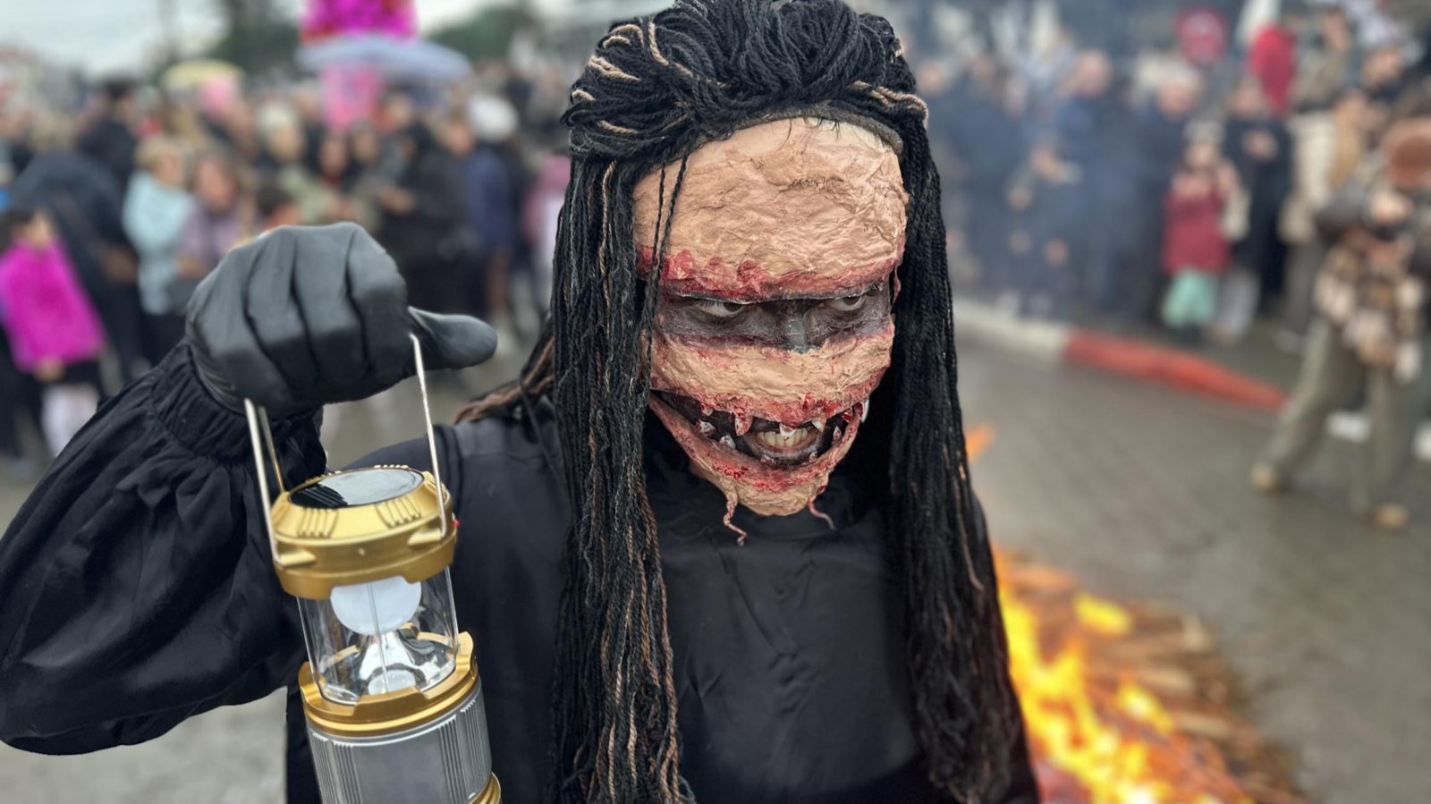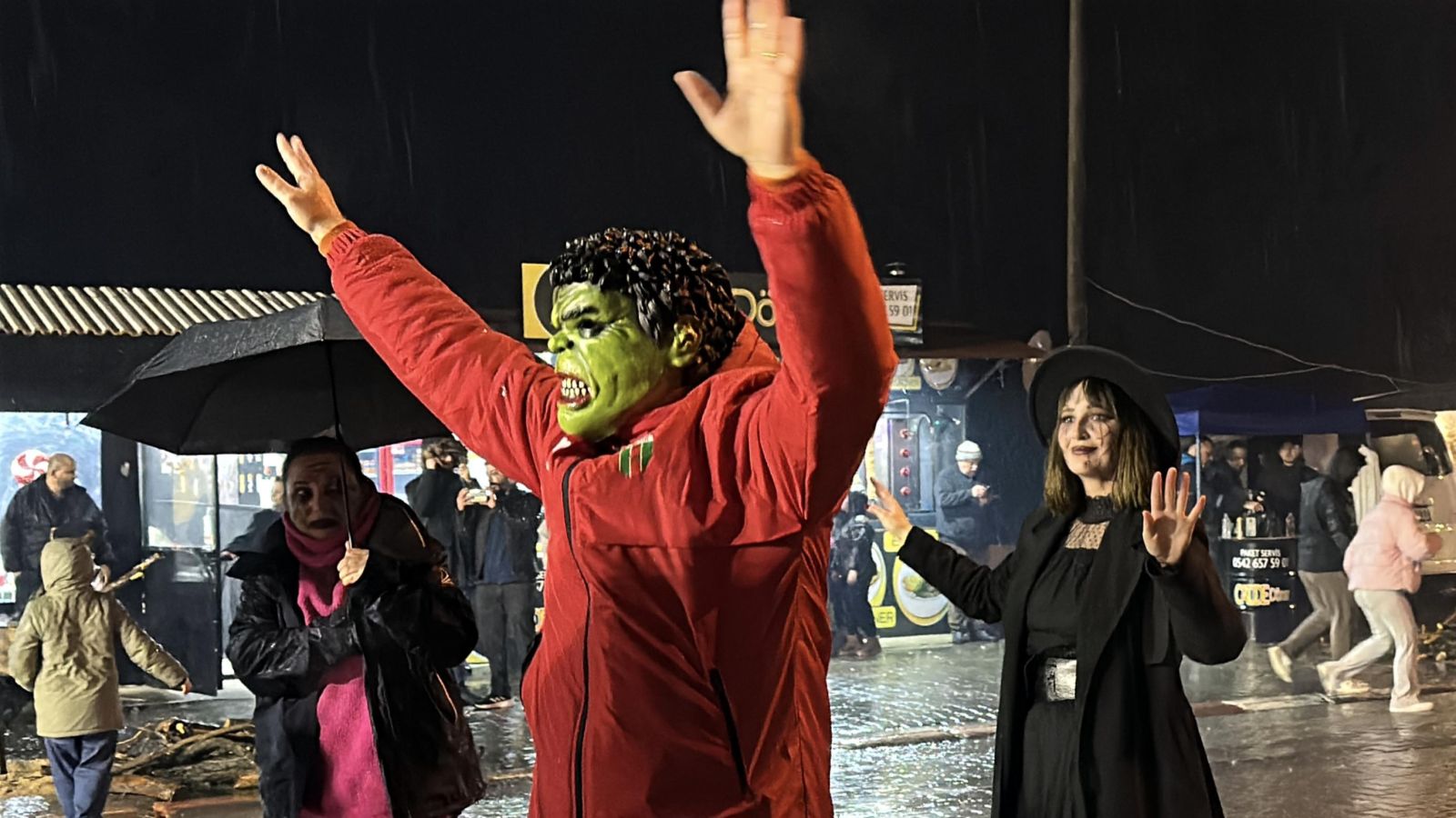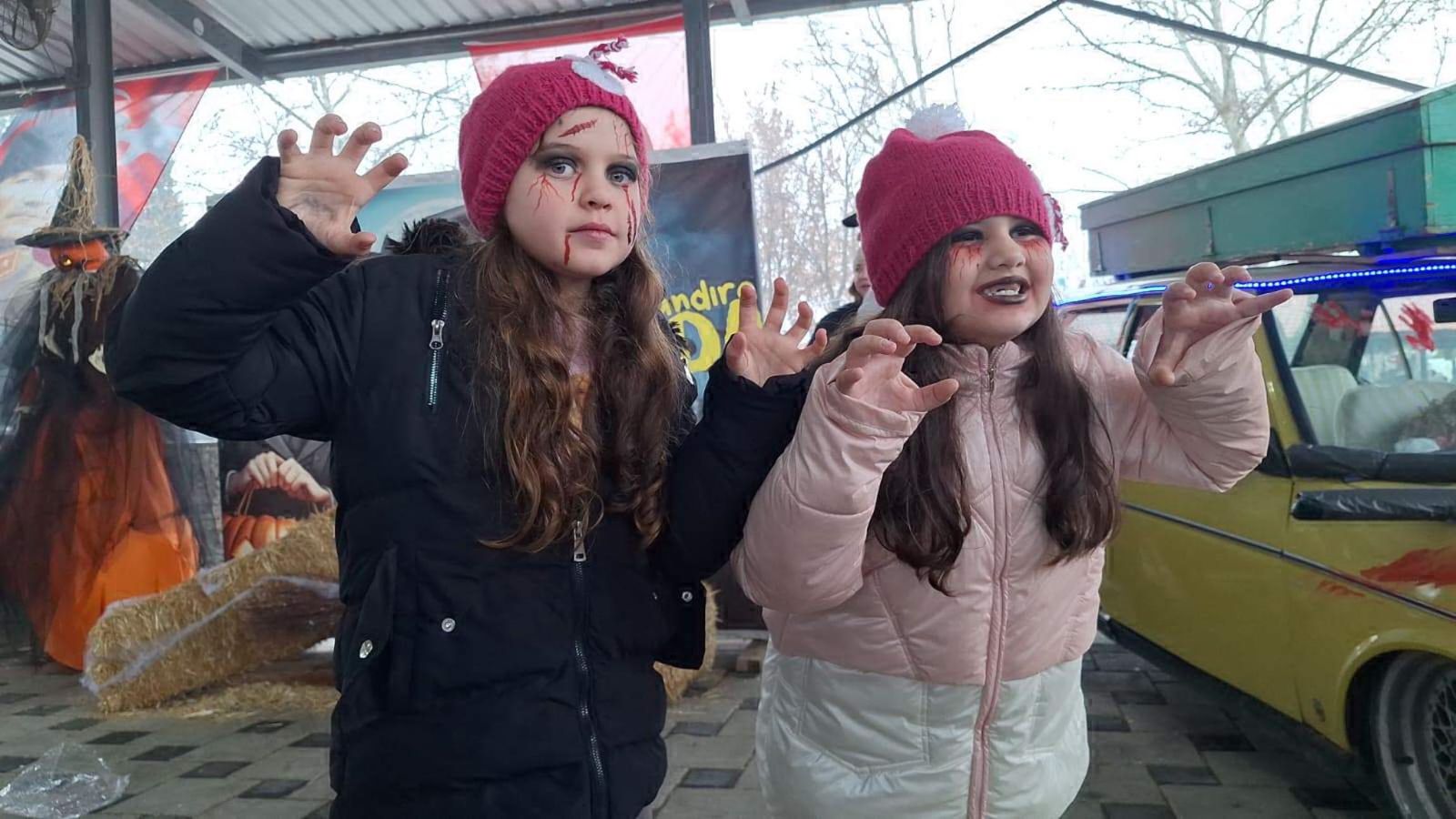 Etkinliğin ilerleyen saatlerinde beyaz çarşaflar giyip yüzlerini boyayanlar, evlerin camlarına vurarak mahalleliyi korkuttular.