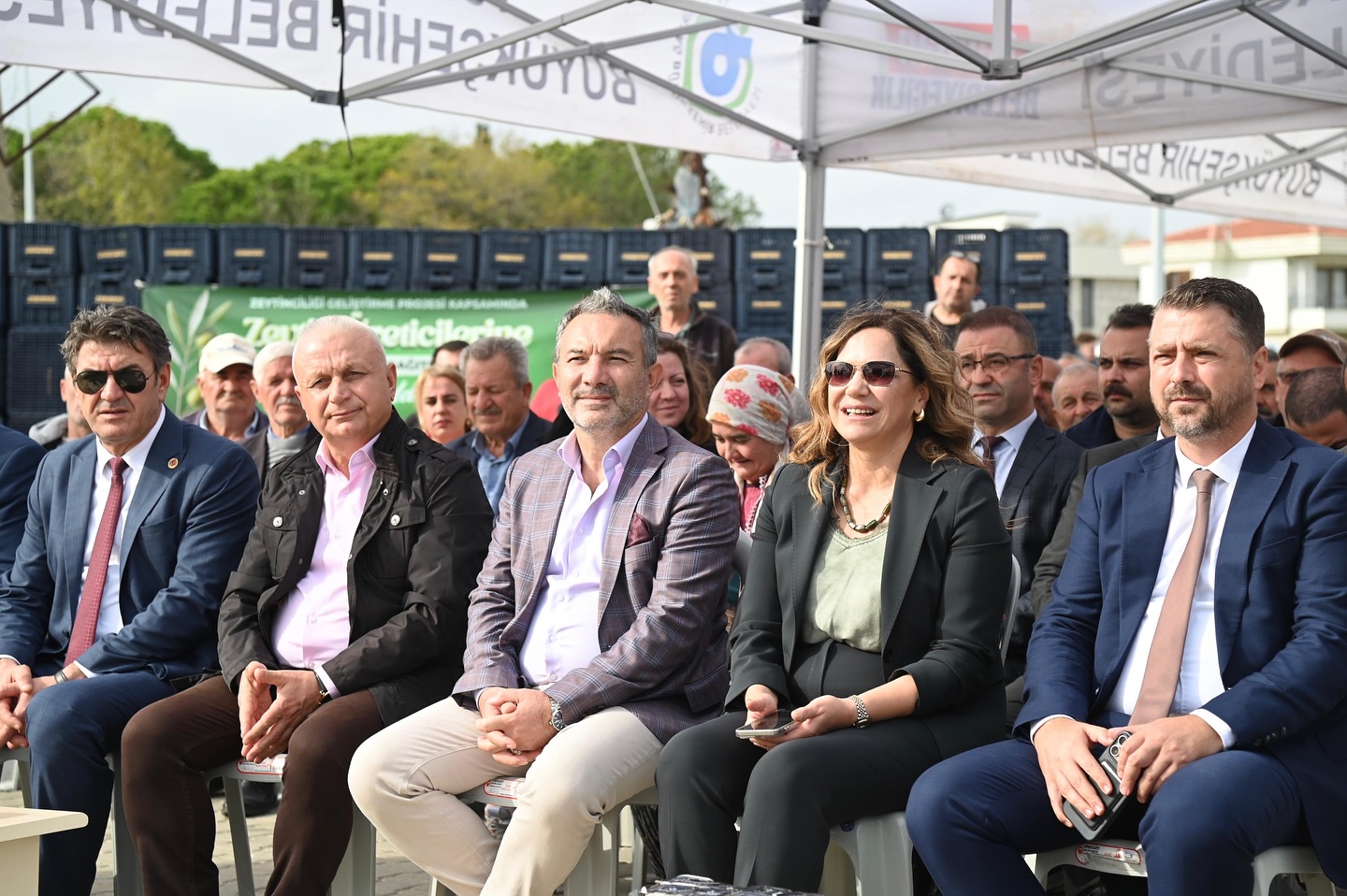 Proje kapsamında 236 üreticiye zeytin toplama ve budama ekipmanlarından oluşan destek paketlerinin teslim edildiğini belirten Candan Başkan, “Malzeme bedelinin yüzde 50’sini Büyükşehir Belediyemiz, yüzde 50’sini Ziraat Odamız karşılıyor. Amacımız tarımın sürdürülebilirliğini sağlamak, üreticimize nefes aldırmak” diye konuştu.