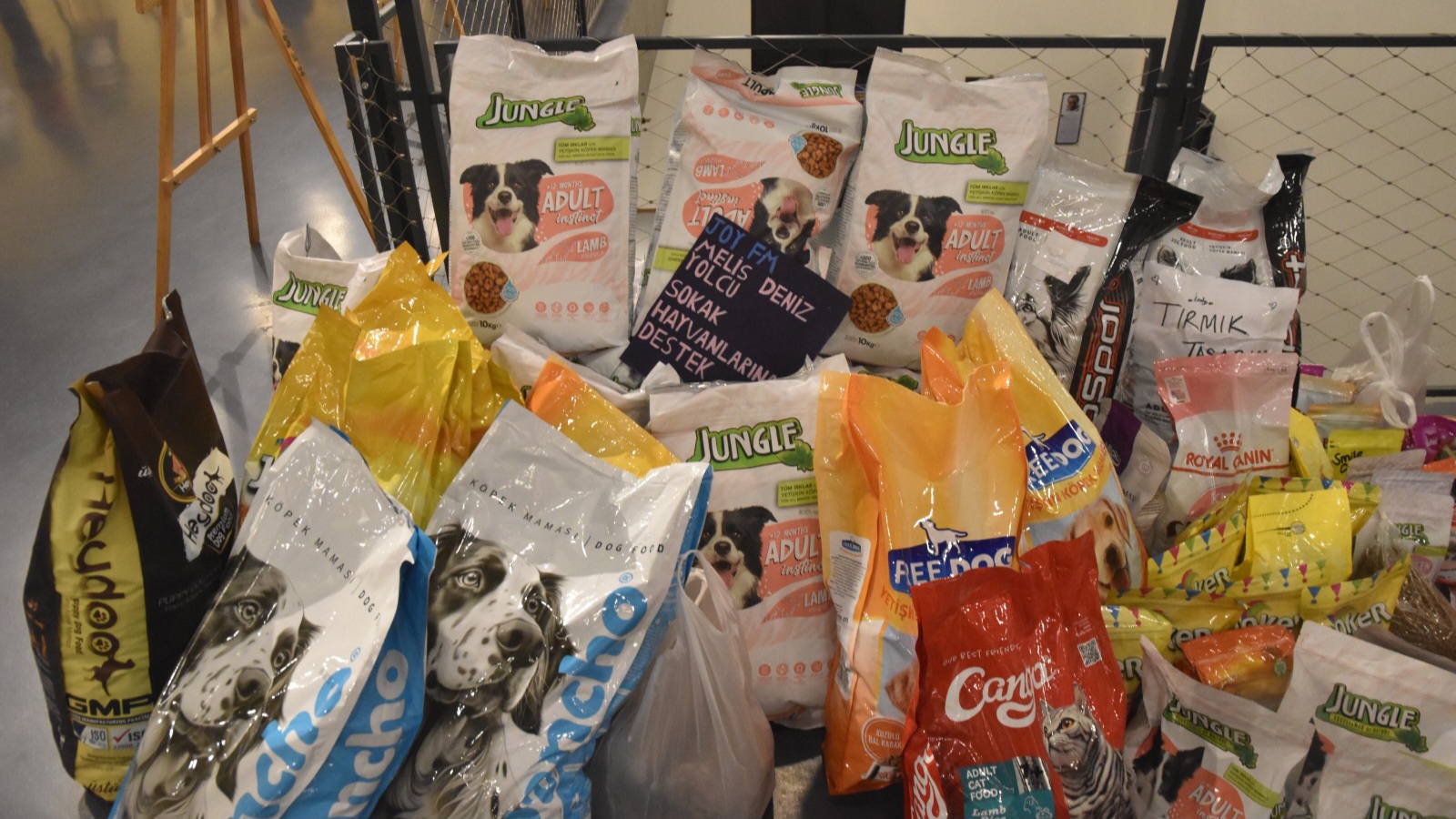 Gecede yaklaşık 5 bin kilogram mama bağışı kabul edildi.