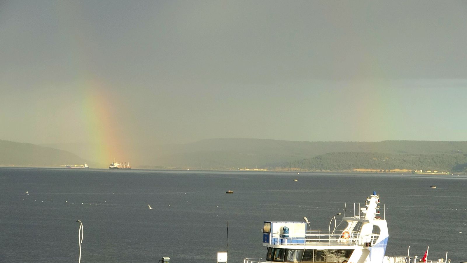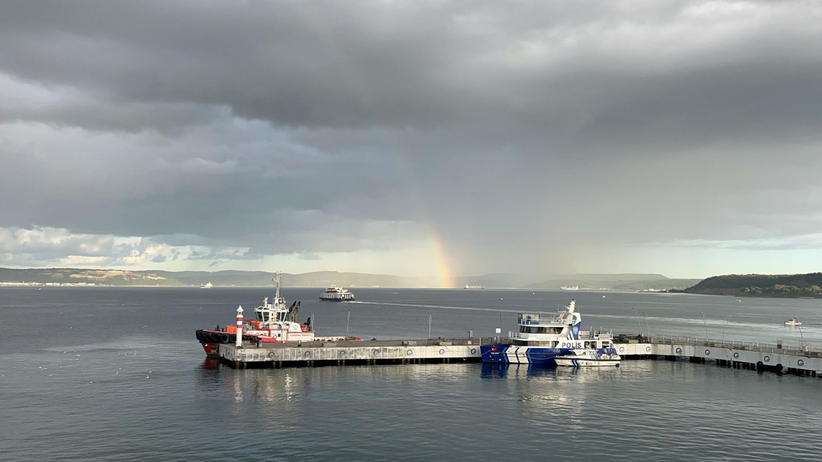 Yağmurun ardından Çanakkale Boğazı’nda gökkuşağı çıktı. Boğazın üzerinde oluşan renk cümbüşü, vatandaşları hayran bıraktı.