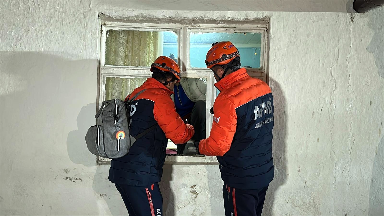 Evdeki dört kişi, ortak girişin çökmeden dolayı kapanması nedeniyle, AFAD ekipleri tarafından pencereden tahliye edildi.