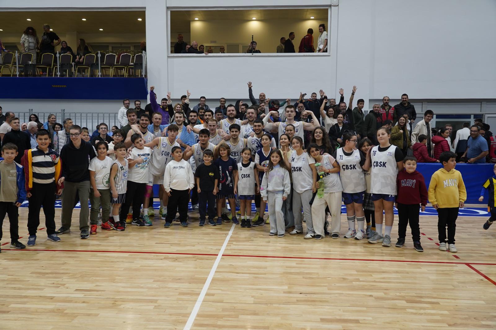 Uzatma periyoduna konuk ekibin 3 sayılık basketiyle mağlup başlayan Çorlu ekibi, pes etmedi. Seyirci desteğini de arkasına alan ÇBSK, kalan dakikalarda savunmada ve hücumda ağırlığını koyarak üstünlüğü ele geçirdi. Karşılaşma, ÇBSK’nın 79-76’lık galibiyetiyle sonuçlandı.