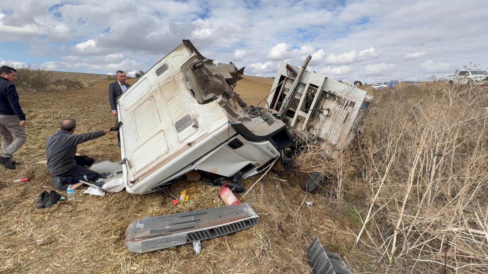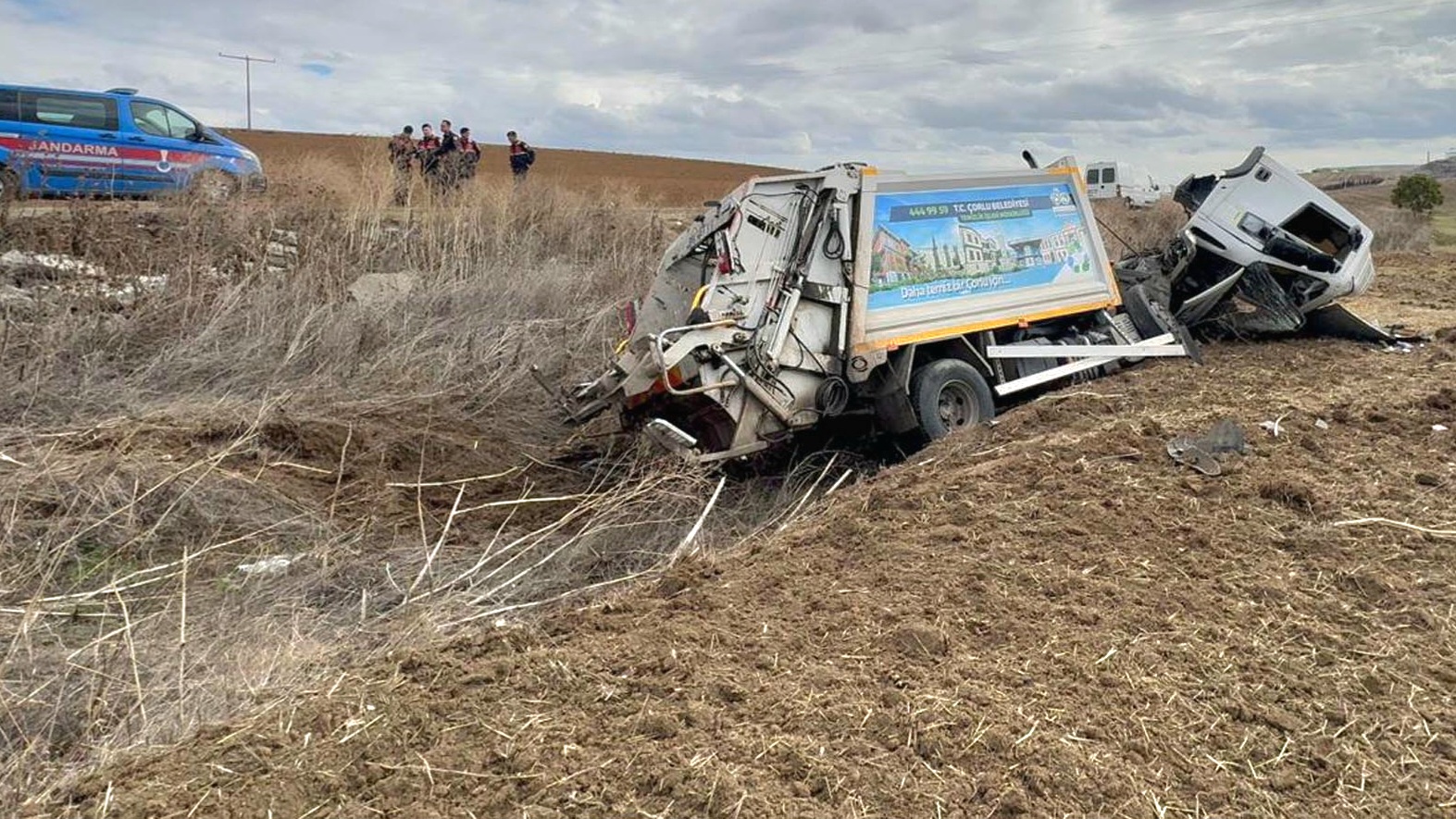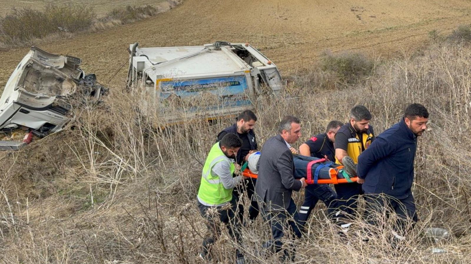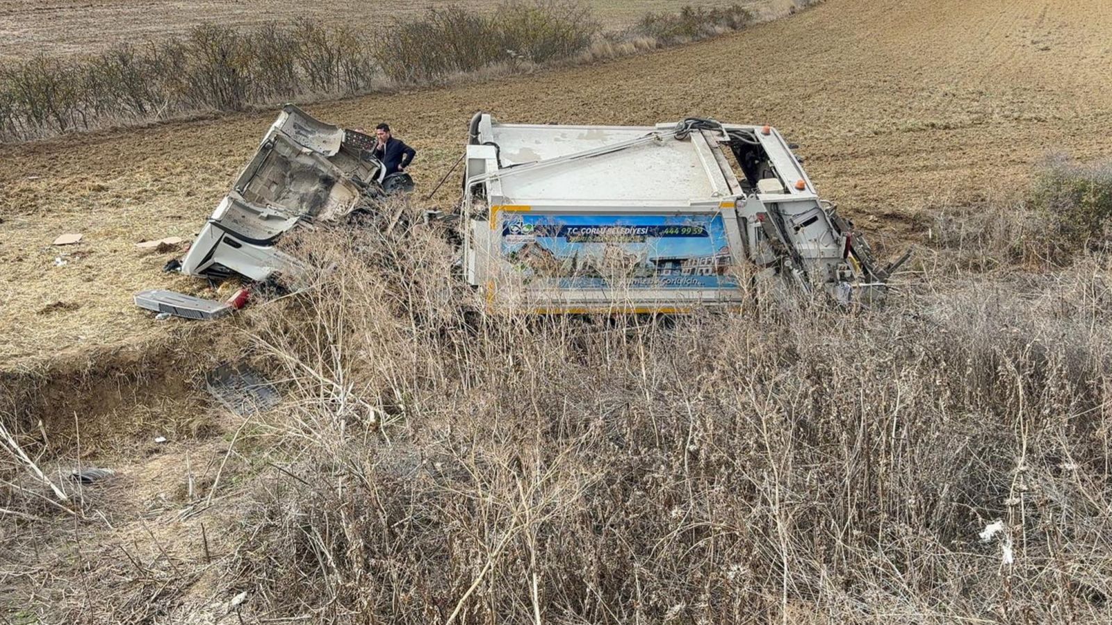 Çorlu Belediyesi'ne ait 16 NBY 51 plakalı çöp toplama kamyonu, sürücüsü Şerif Eş'in direksiyon hakimiyetini kaybetmesi sonucu yoldan çıkıp tarlaya devrildi.