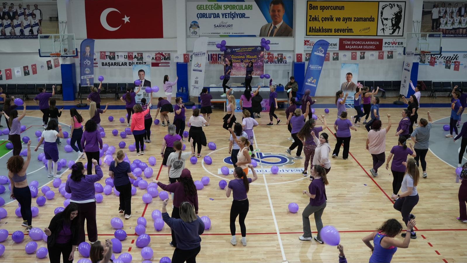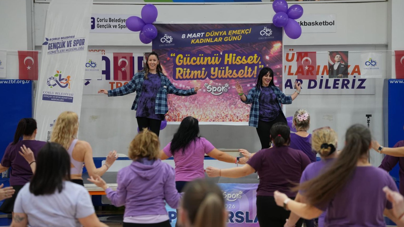 8 Mart Kadınlar Günü programında en enerjik durak Ziya Berhan Kılıç Spor Salonu oldu. Yüzlerce Çorlulu kadının katılımıyla gerçekleşen zumba etkinliği, salonu âdeta bir şenlik alanına çevirdi. Hareketli müzikler eşliğinde dans eden kadınlar, hem stres attı hem de dayanışmanın ve bir arada olmanın keyfini çıkardı. Alkışların ve kahkahaların müzikle karıştığı atmosfer, izleyenlere büyük bir enerji verdi.