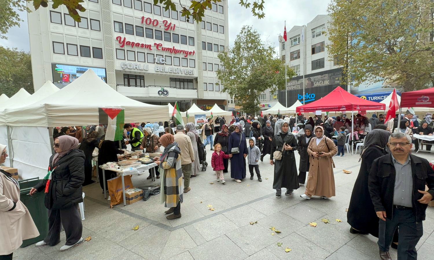 Çorlu Filistin İnisiyatifi Derneği tarafından Cumhuriyet Meydanı’nda Gazze’de yaşanan zulme dikkat çekmek ve Filistin halkına destek amacıyla kermes gerçekleştirildi.