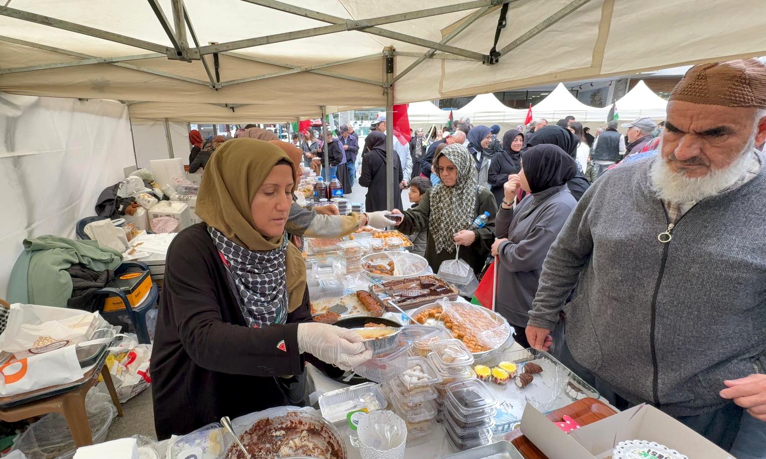 Bir hafta boyunca açık kalacak kermeste ev yapımı yiyecekler, kullanılmayan kıyafetler ve çeşitli ev eşyaları satışa sunuldu. Vatandaşlar, hem alışveriş yaparak hem de bağışta bulunarak Filistin halkına destek verdi. (DHA)