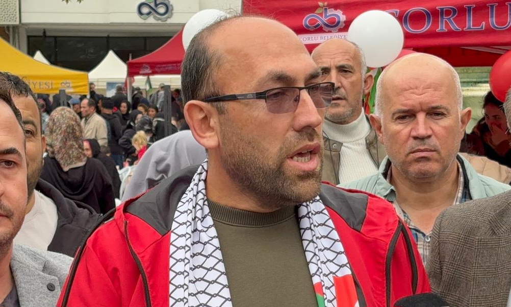 Kermeste konuşan Çorlu Filistin İnisiyatifi Derneği Grup Sözcüsü Muhammed Özmen çeşitli sivil toplum kuruluşları ve siyasi partiden insanların kermese destek verdiğini belirterek, “Buradaki STK’larımız, farklı görüşler, fikirler, partiler hepsi bir araya geldiler ve bu gördüğünüz organizasyonu hep beraber inşa ettik.