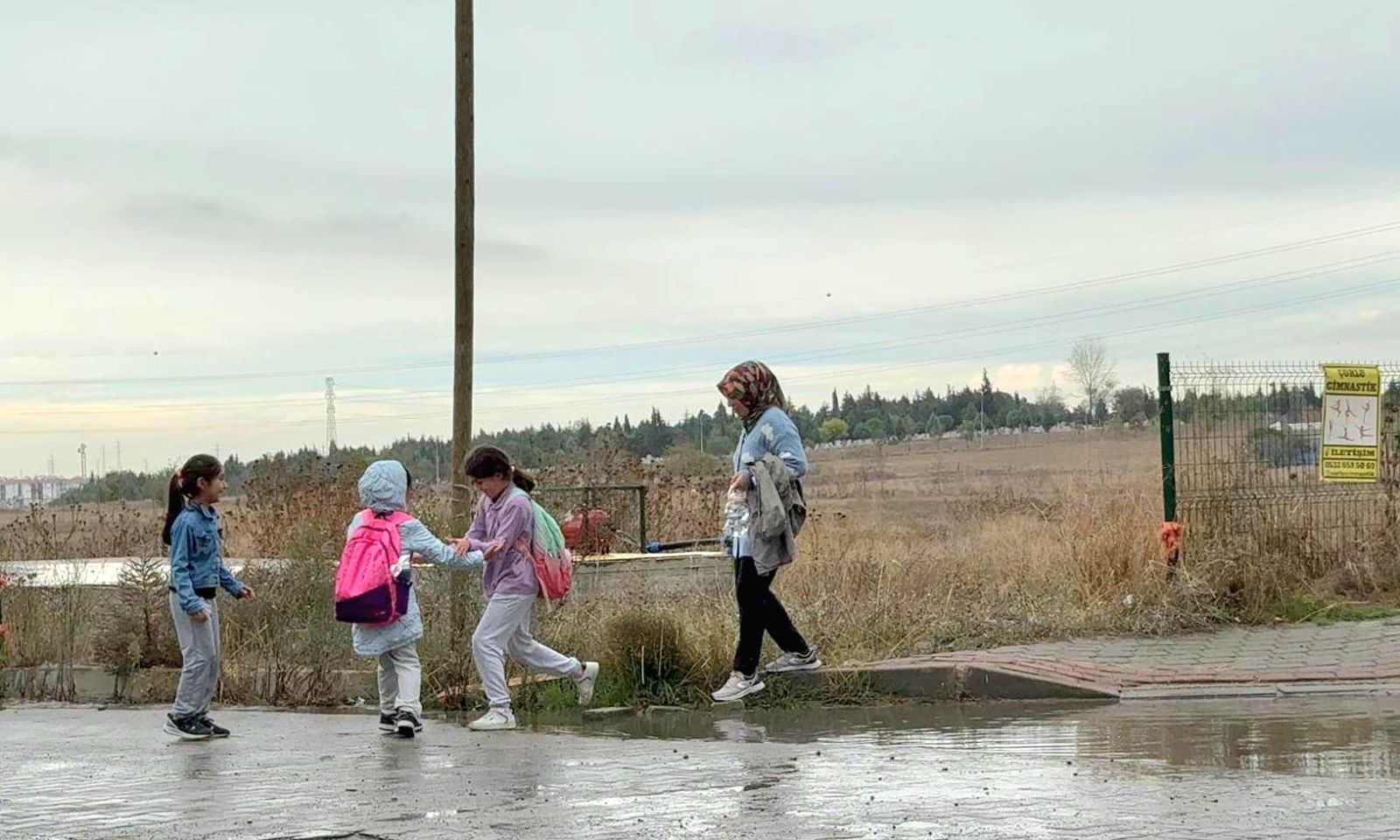 Nusratiye Mahallesi Nergis Sokak’ta bulunan okuldan çıkan öğrenciler, velilerinin kullandığı güzergahta yağmurun oluşturduğu büyük su birikintisi nedeniyle karşıya geçmekte güçlük çekti. Yolun suyla kaplanması nedeniyle bazı veliler motosikletle çocuklarını karşı yöne taşıdı.