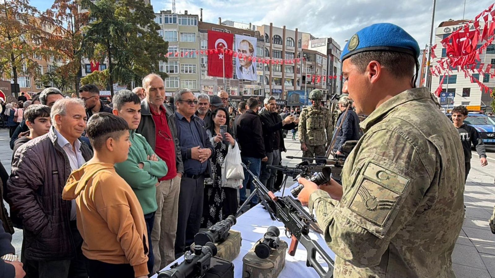 Törenin ardından Atatürk Meydanı’nda 41’inci Komando Tugay Komutanlığı tarafından silah ve teçhizat sergisi açıldı. Silahlar ve kamuflajlı komando askerler, vatandaşlar tarafından yoğun ilgi gördü. Vatandaşlar, sergiyi cep telefonları kameralarıyla görüntüledi.