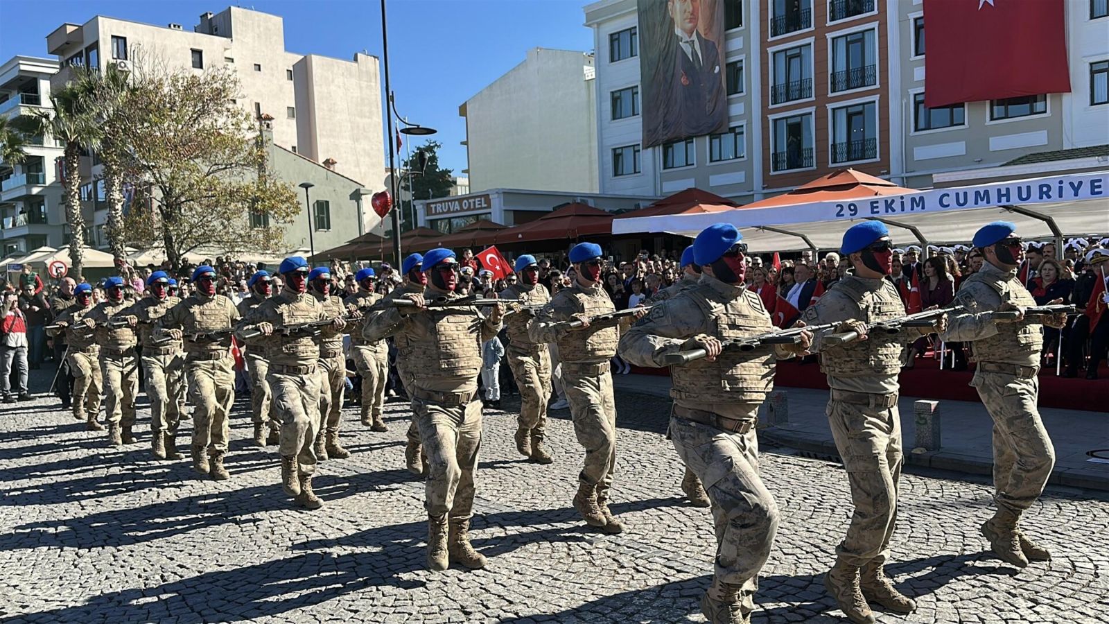Çanakkale'de Cumhuriyetin 102’nci yıl dönümü etkinlikleri kapsamında kordon boyundaki Kayserili Ahmetpaşa Caddesi'nde geçit töreni düzenlendi.