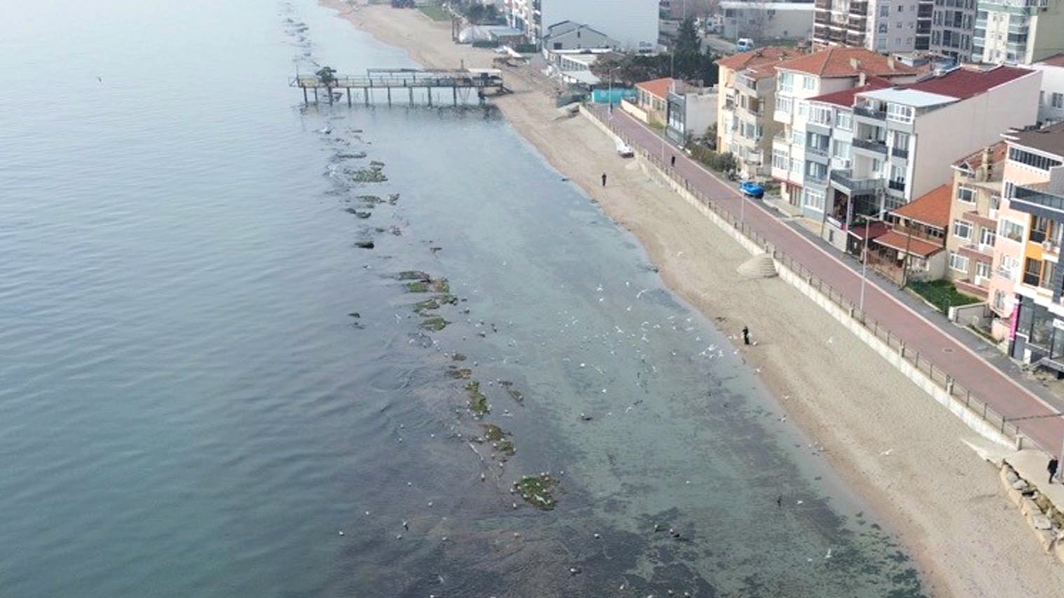 Denizin çekildiği bölgede oluşan kayalıkların üzerine toplanan çok sayıda martı, sığ sularda ve kayalıkların arasında bulunan küçük balıkları avlamaya çalıştı. Ortaya çıkan manzara sahilde yürüyüş yapan vatandaşların da ilgisini çekti.
