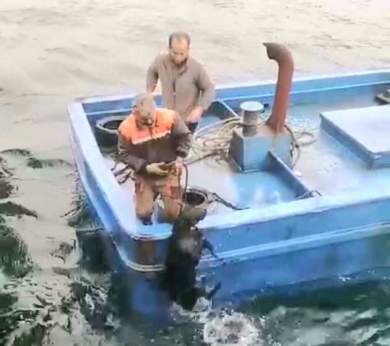 Tekneyle denize açılan tayfa, ip yardımıyla köpeği kurtardı. Tekneye alınan köpek kıyıya çıkarıldı.