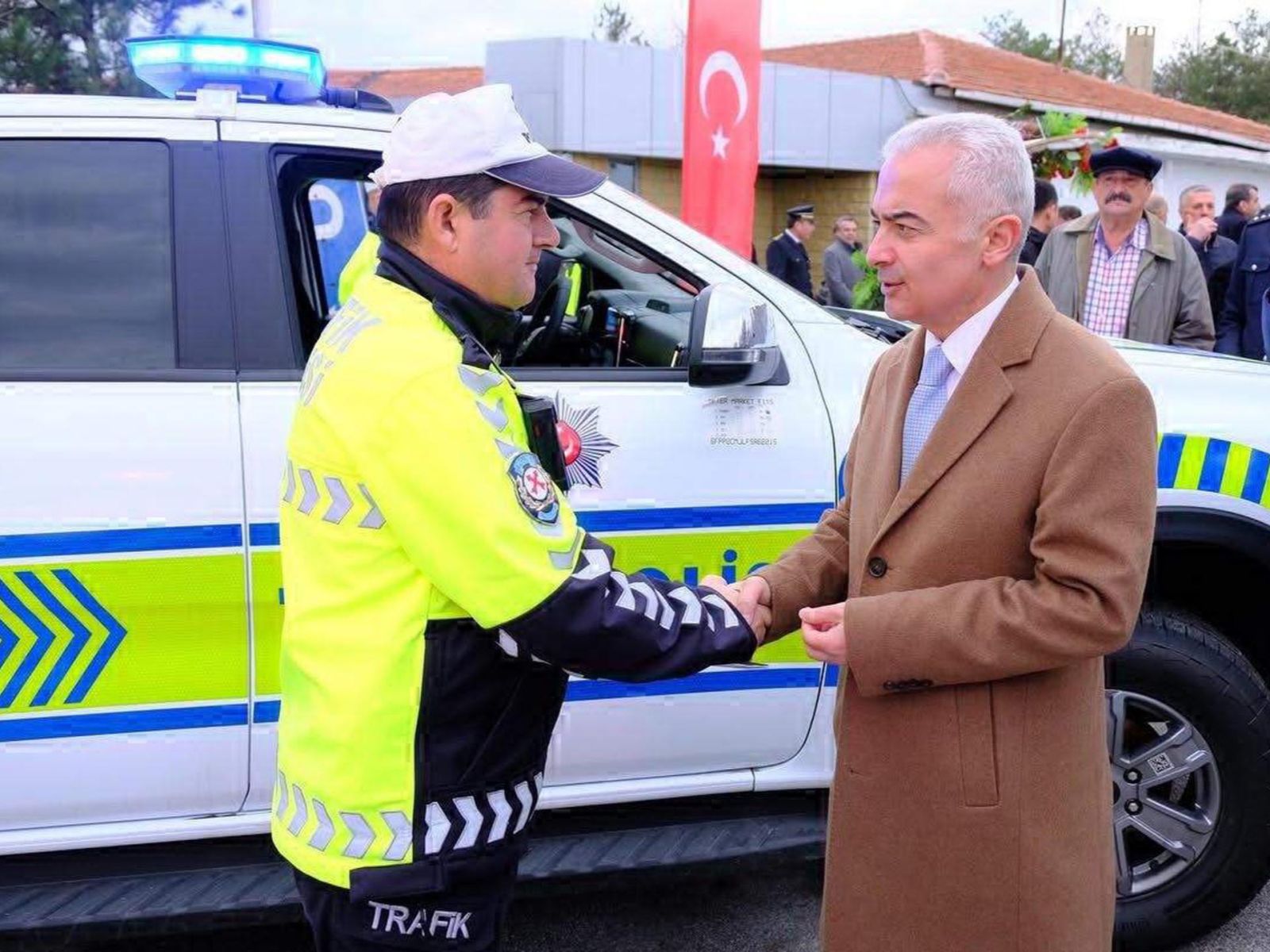 Turan, “Bilindiği üzere, ülkemizin güvenlik kapasitesine tarihi bir katkı sunacak toplam 9 bin 200 yeni hizmet aracı, Cumhurbaşkanlığımızın liderliğinde gerçekleştirilen büyük bir teslim töreniyle tüm illerimize gönderilmiştir. Bu kapsamda Kırklareli olarak; İl Emniyet Müdürlüğümüze 57, İl Jandarma Komutanlığımıza 35 olmak üzere toplam 92 yeni araç kazandırılmıştır.