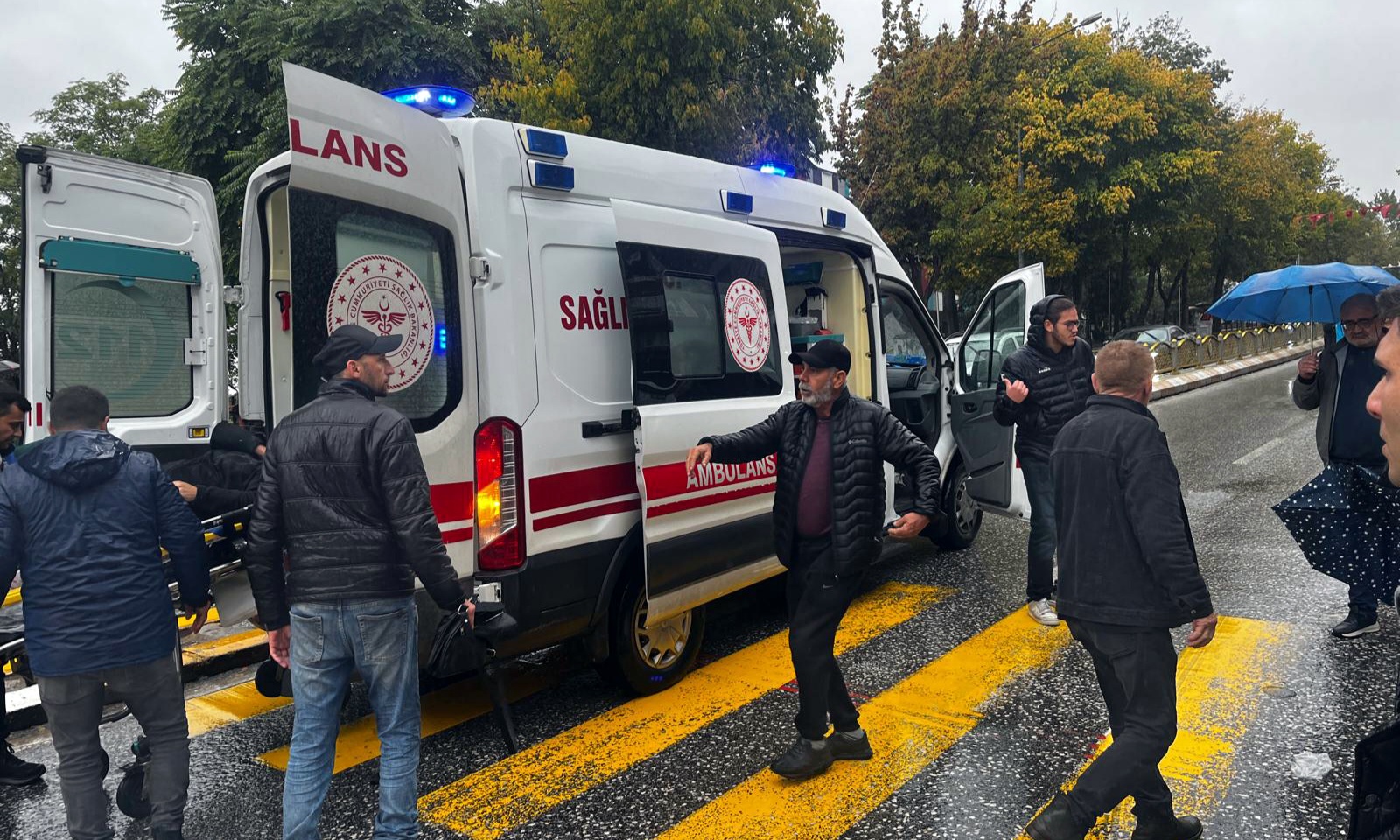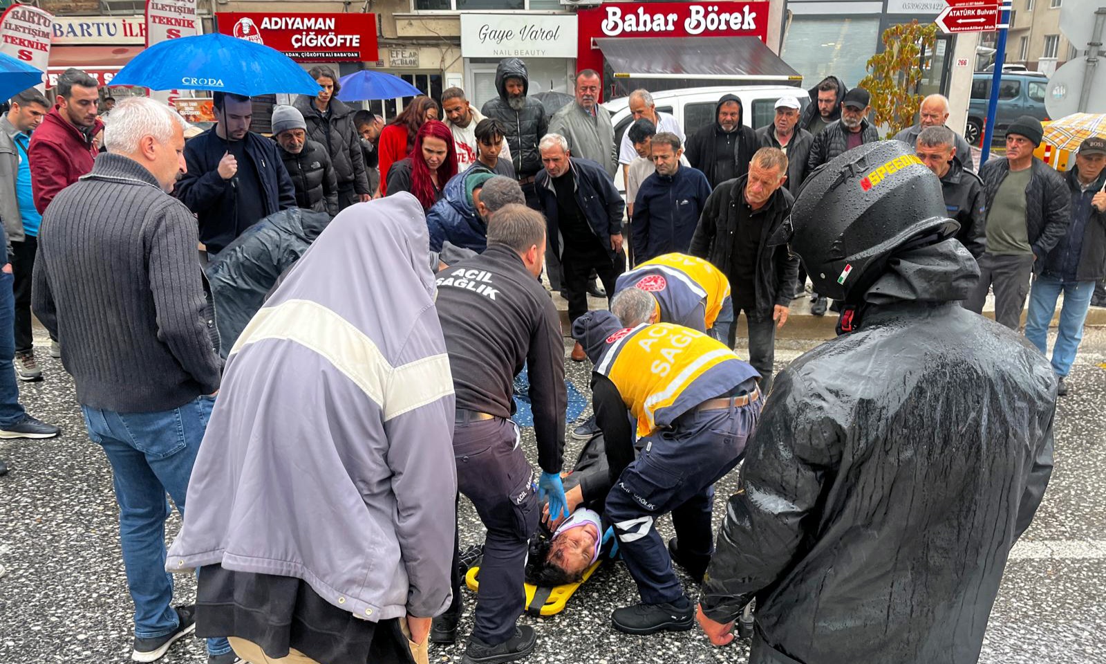 Yere yığılan Nurgül Ç. yaralandı, ihbarla bölgeye sağlık ve polis ekipleri sevk edildi. Kuvvetli yağışın etkili olduğu anlarda, kazayı gören bölge esnafı, yaralanan Nurgül Ç.’nin ıslanmaması için şemsiye getirip, üşümemesi için de üstüne mont örterek başında bekledi.