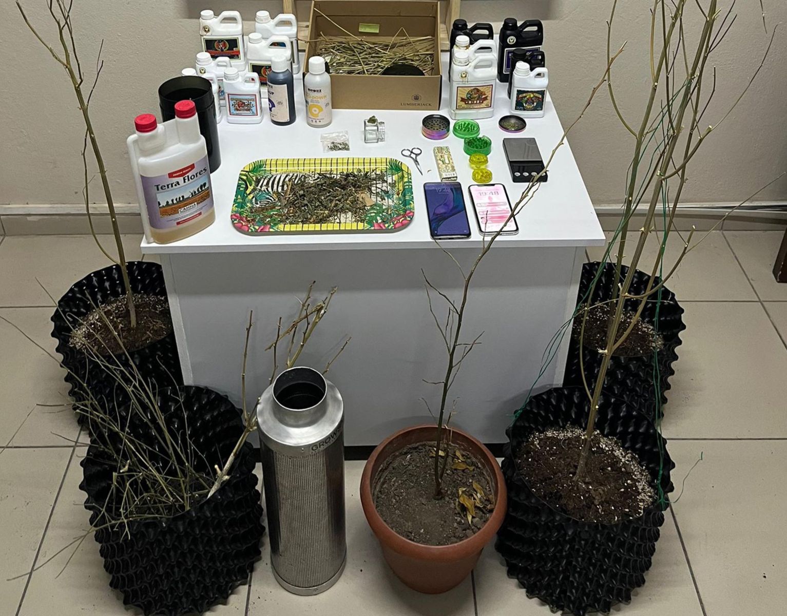 Ekiplerin iki adrese eş zamanlı düzenlediği operasyonda, bitki üretim kabini, 5 saksı içerisinde ekili kenevir, 7 kutu suni sıvı gübre, 3 öğütücü, 1 hassas terazi, 14 gram Hint keneviri, çeşitli bitki üretiminde kullanılan malzemeler, ruhsatsız 4 tabanca ile 1 tüfek, silahlara ait 90 mermi ve fişek ele geçirildi.