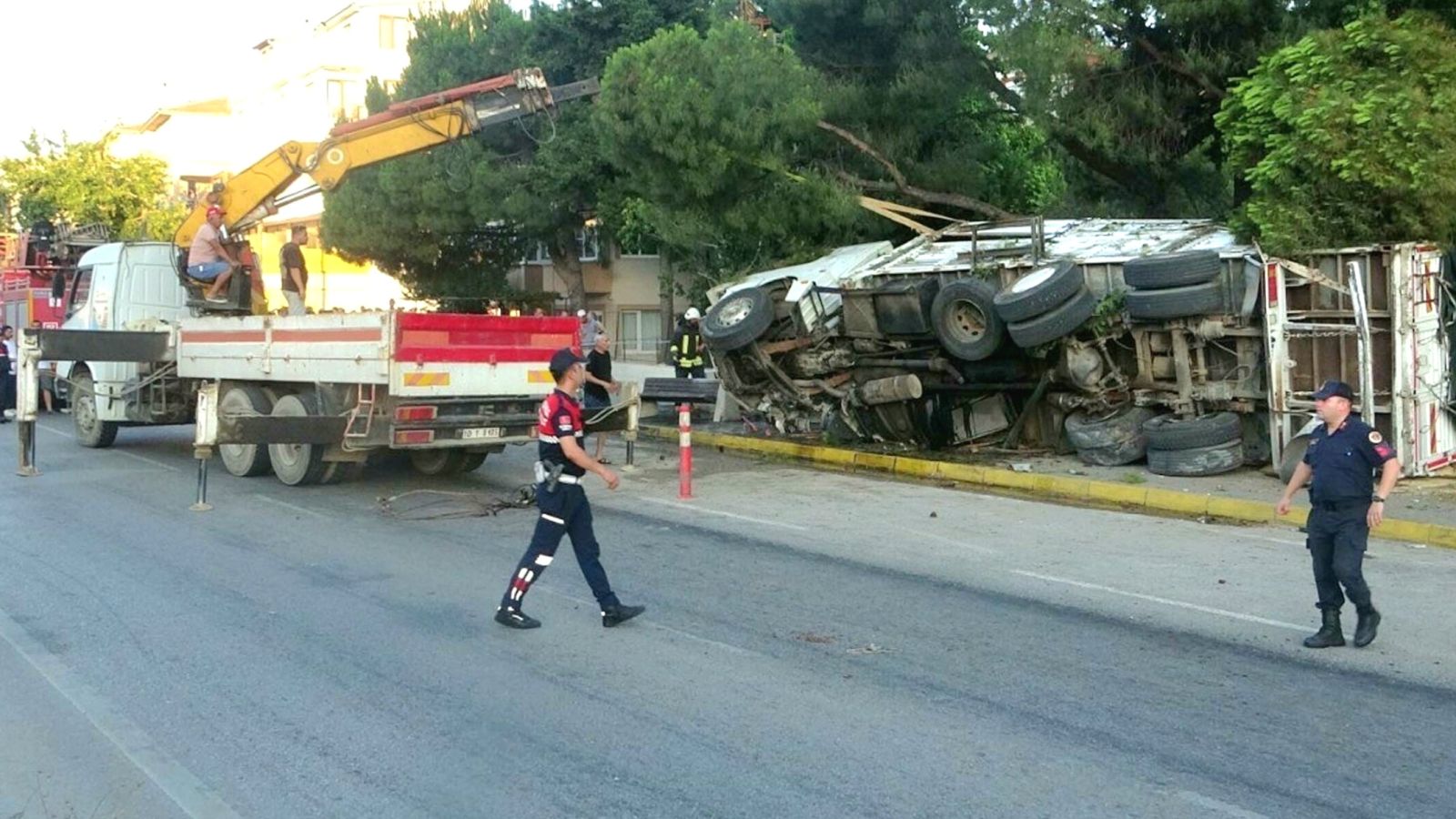 Çarpmanın etkisiyle kamyon yol kenarındaki kaldırıma devrilerek durabildi. Kazayı görenler durumu 112 Acil Çağrı Merkezine bildirdi. Olay yerine çok sayıda jandarma, polis, itfaiye ve sağlık ekipleri sevk edildi.