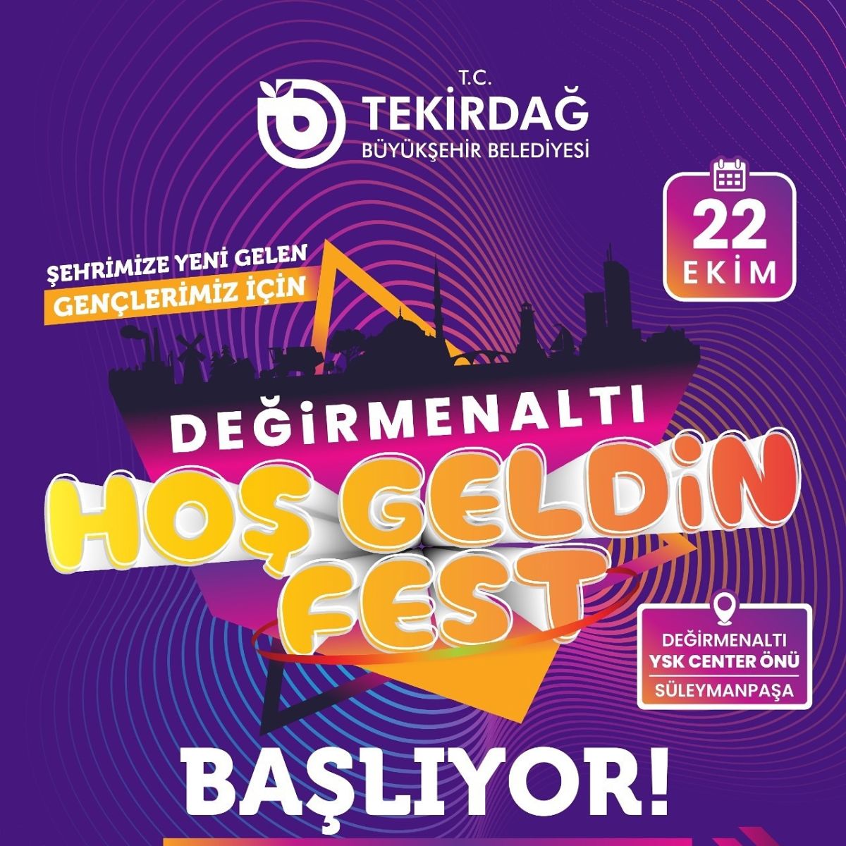Tekirdağ’a üniversite eğitimi için gelen gençlere “Hoş geldin” demek ve kentle kaynaşmalarını sağlamak amacıyla renkli bir festival organize ediliyor. Tekirdağ Büyükşehir Belediyesi tarafından düzenlenen “Değirmenaltı Hoş Geldin Fest”, 22 Ekim Çarşamba günü Süleymanpaşa Değirmenaltı YSK Center önünde gerçekleştirilecek.
