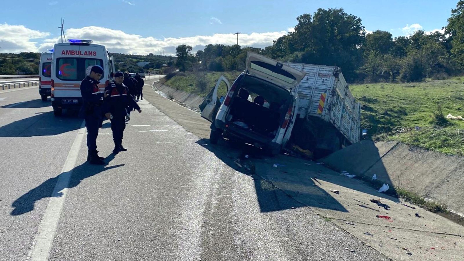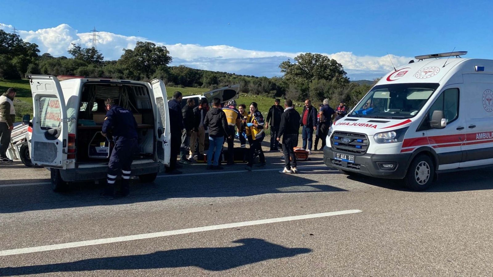 Çanakkale istikametinden Balıkesir’in Edremit ilçesi istikametine gitmekte olan Hüseyin A. yönetimindeki hafif ticari araç, aynı yönde ilerleyen İsmail Y. yönetimindeki kamyonete arkadan çarptı.