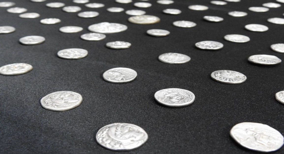 Otomobilde yapılan aramada Helenistik döneme ait olduğu anlaşılan ön yüzünde Büyük İskender’in Herakles tarzı portresi ve arka yüzünde Yunan Tanrısı Zeus figürleri bulunan tarihi eser niteliğinde gümüş sikkeler ele geçirildi.