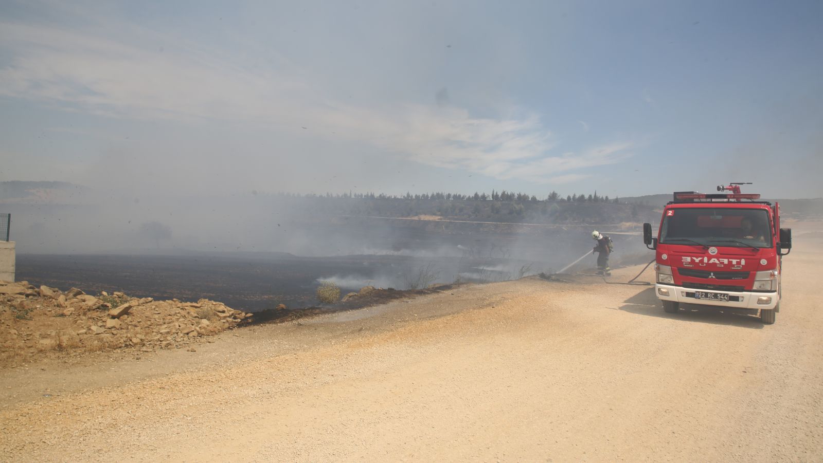 Fotoğraftaki anız yangının olduğu tarlanın sahibine adli ve idari işlemler başlatılmıştır. İdare olarak ceza kesmekten yorulduk.