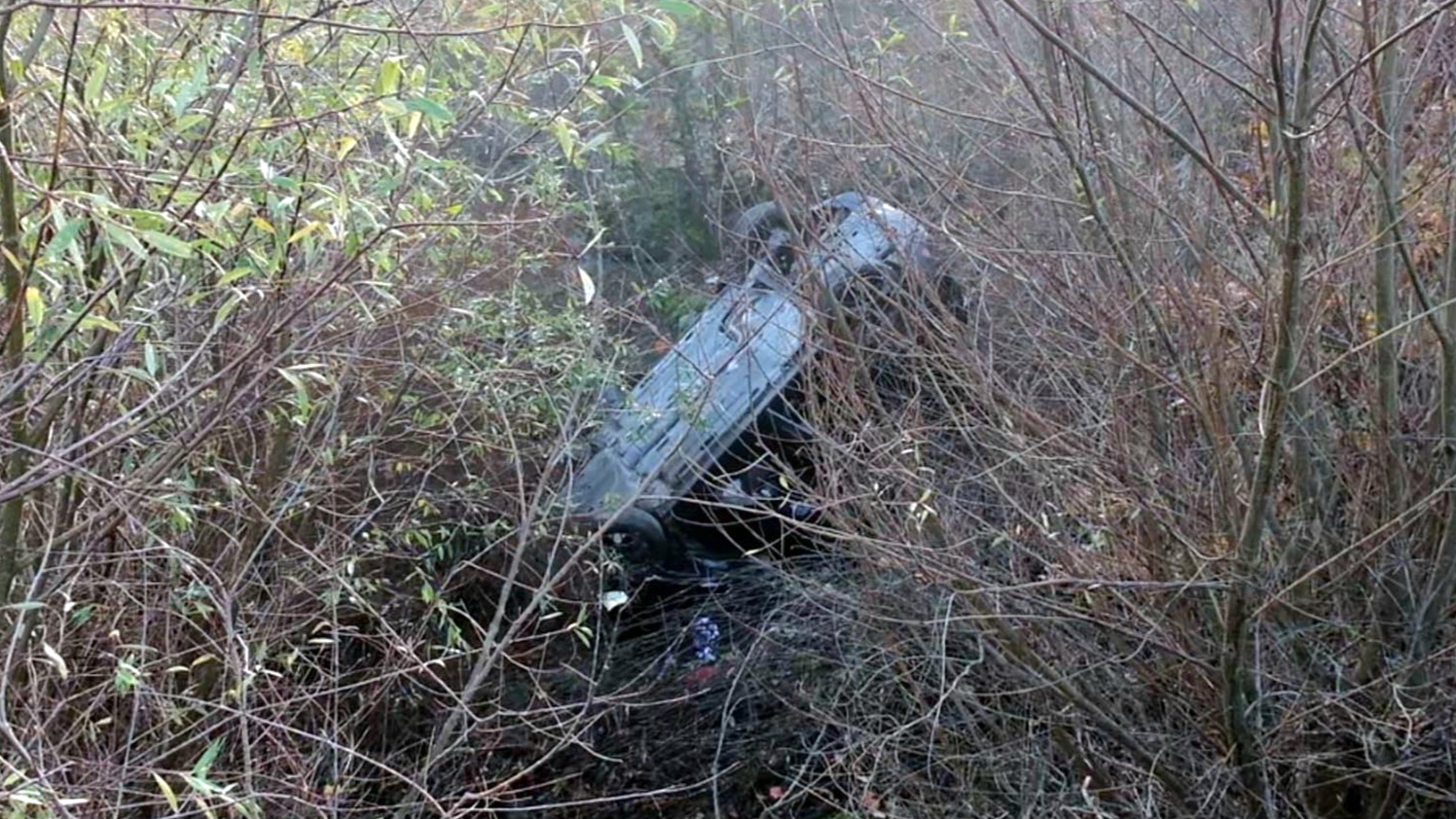 Ormanda avlanmaya çıkan avcılar, şarampole devrilen otomobili görünce durumu 112 Acil Çağrı Merkezi'ne bildirdi.