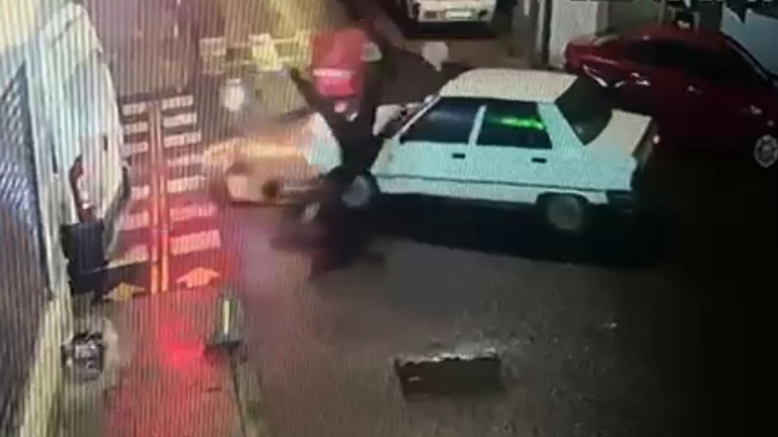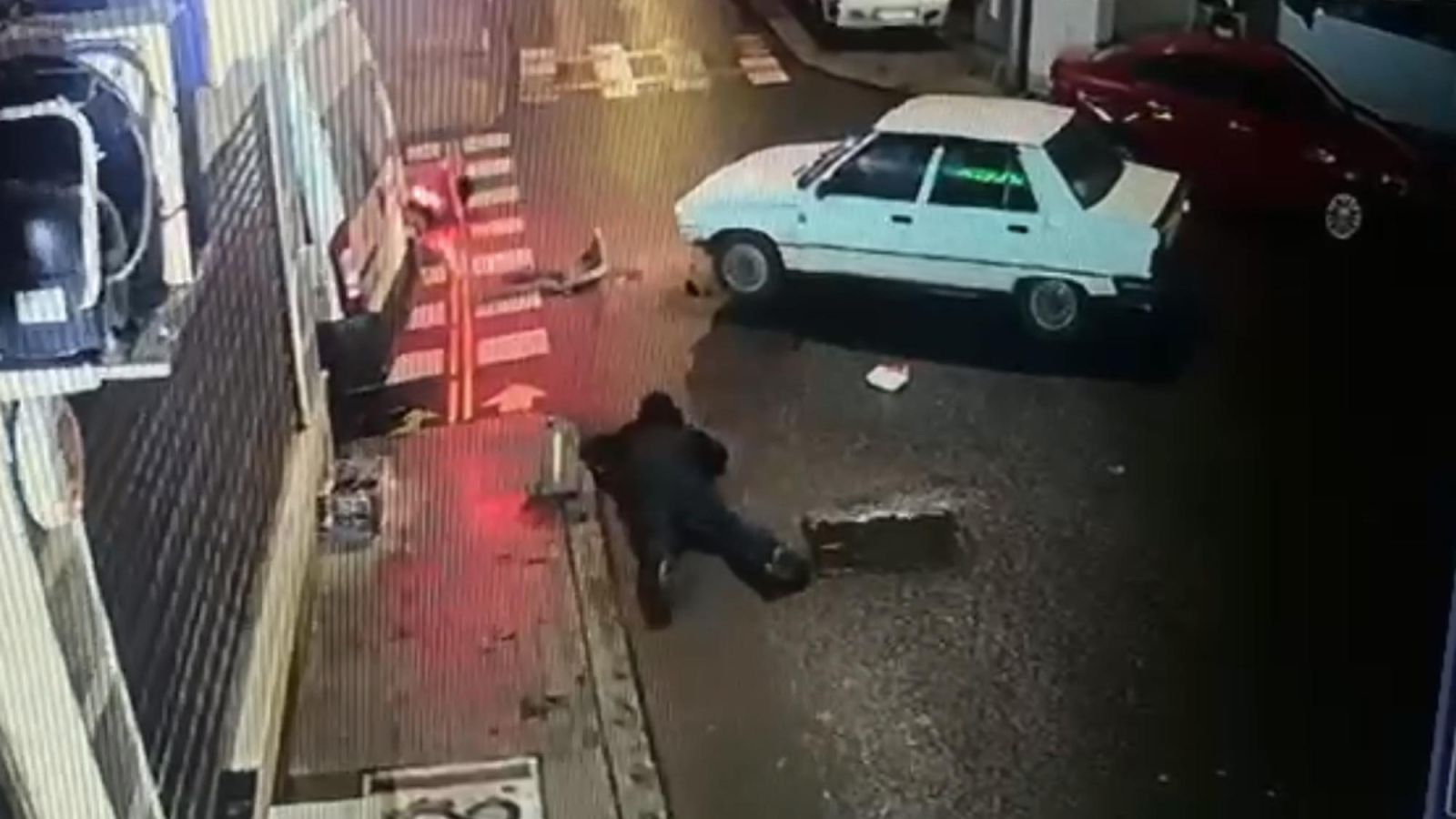 Sürücü ve yanındaki kişi, kazayı görenlerin toplanmaya başlamasıyla birlikte, otomobile binerek olay yerinden uzaklaştı. Kaza anı ise çevredeki güvenlik kamerasına yansıdı.