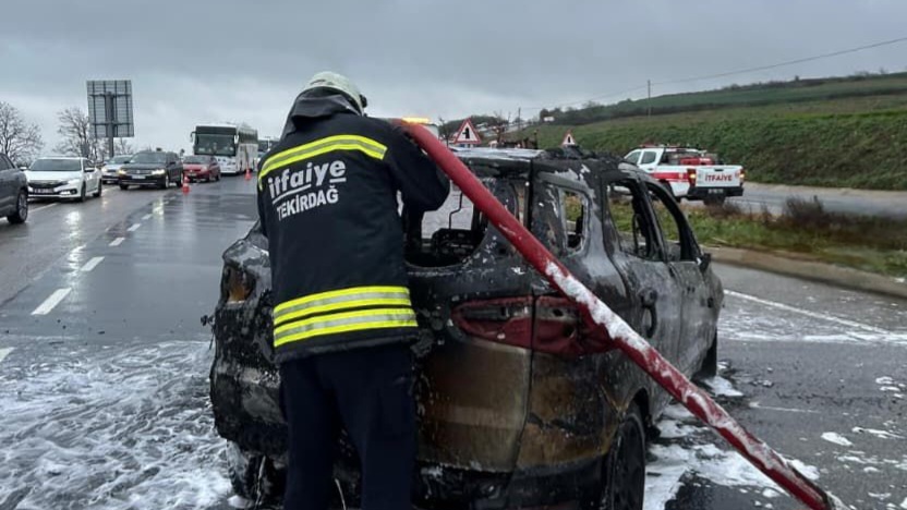 İtfaiye ekiplerinin müdahalesiyle yangın kontrol altına alınarak söndürülürken, otomobil kullanılamaz hale geldi.