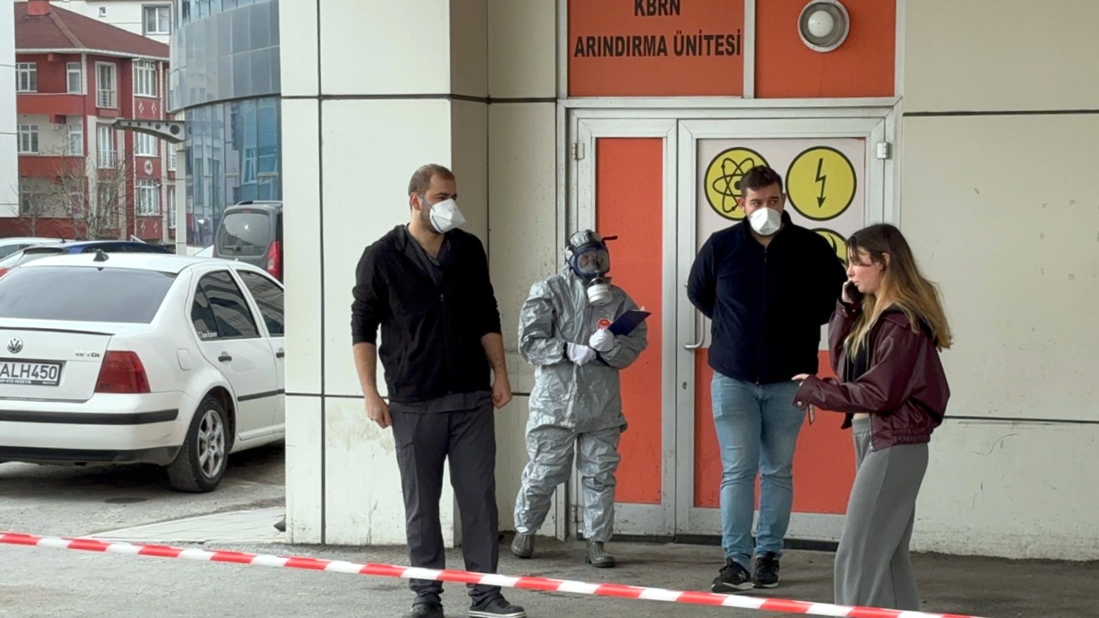 Olay sonrası Çerkezköy Devlet Hastanesi KBRN servisinde, olası risklere karşı güvenlik önlemi alındı. (DHA)
