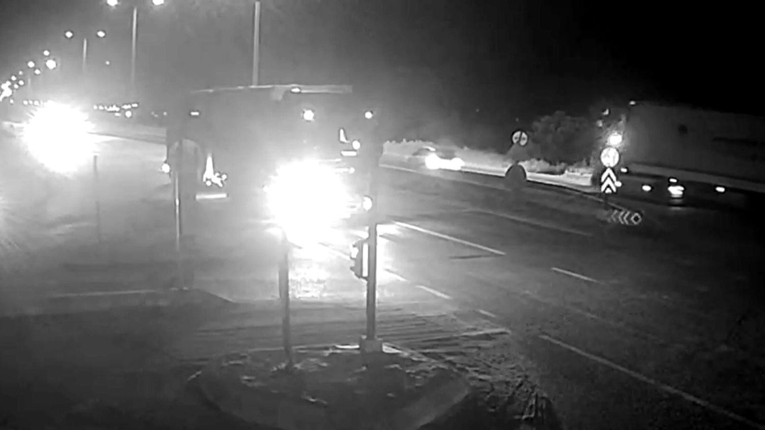 Edirne’de, Kapıkule Sınır Kapısı’na açılan D100 kara yolunda, 1 kişinin öldüğü 1 kişinin de yaralandığı kaza, çevredeki bir iş yerinin güvenlik kamerasına yansıdı. Görüntüde, kırmızı ışıkta bekleyen K.İ. idaresindeki CE 5452 XF plakalı TIR’a, Muhammet Şen idaresindeki kapalı kasa minibüsün hızla arkadan çarptığı yer aldı.