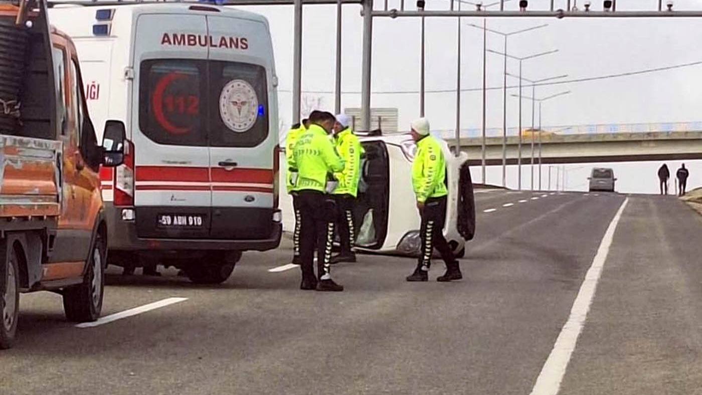 Süleymanpaşa’dan Malkara istikametine giden N.Ü. yönetimindeki hafif ticari araç, sürücüsünün direksiyon hâkimiyetini kaybetmesi sonucu takla attı.