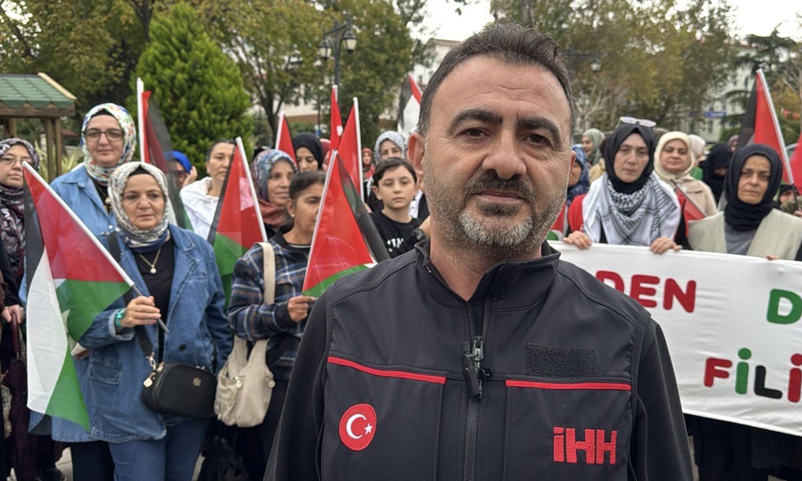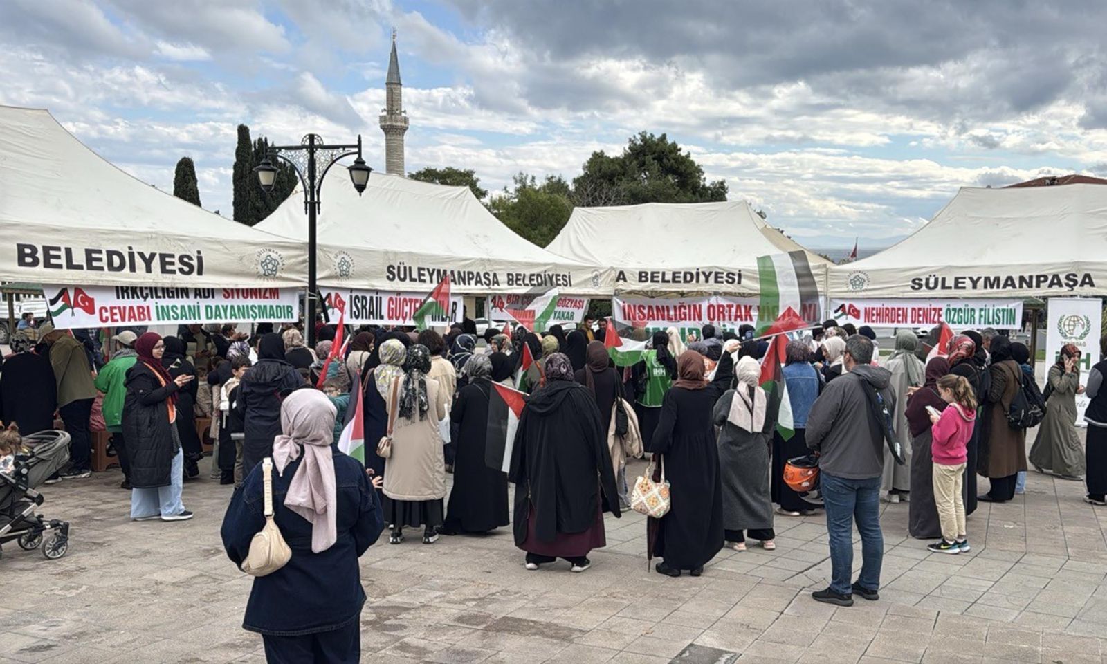 İnsan Hak ve Hürriyetleri (İHH) İnsani Yardım Vakfı Tekirdağ Şubesi tarafından Tekirdağ'ın Süleymanpaşa ilçesinde bulunan Atatürk Meydanı'nda Gazze'ye insani yardım ulaştırmak amacıyla yola çıkan ancak İsrail'in saldırısına uğrayan Küresel Sumud Filosu'na destek eylemi düzenlendi.