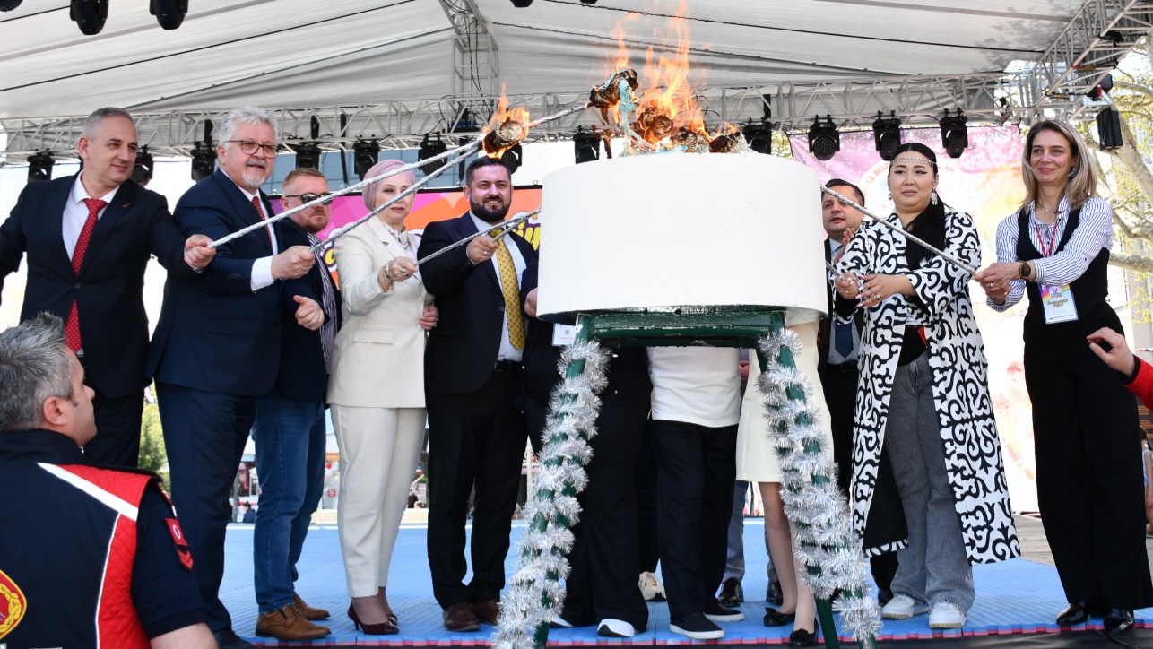 Kongre Meydanı’nda konuk ekip temsilcilerinin şenlik ateşini yakmasının ardından sahne gösterileri gerçekleştirildi.