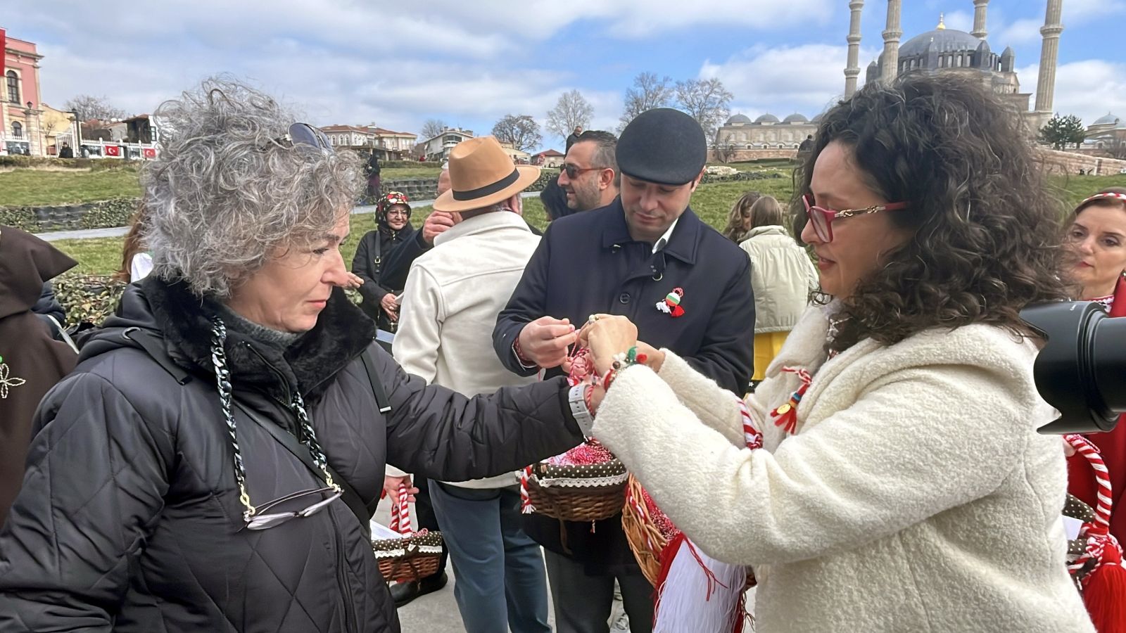Balkanlarda, baharın gelişini müjdelediğine inanılan ve her yıl 1 Mart'ta kutlanan 'Baba Marta' etkinliği, Bulgaristan Edirne Başkonsolosluğu tarafından düzenlendi. Kutlama kapsamında, yöresel kıyafetler giyen konsolosluk çalışanları ve çocuklar, Edirne sokaklarında 'marteniçka' adı verilen kırmızı beyaz bileklikleri dağıttı.