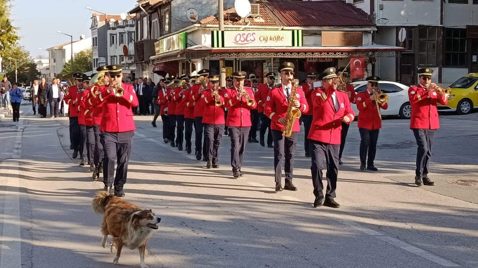 Hükümet Caddesi üzerindeki Muhtarlar Konağı önünde toplanan kortej, Edirne Belediye Bandosu eşliğinde Atatürk Anıtı’na yürüdü.