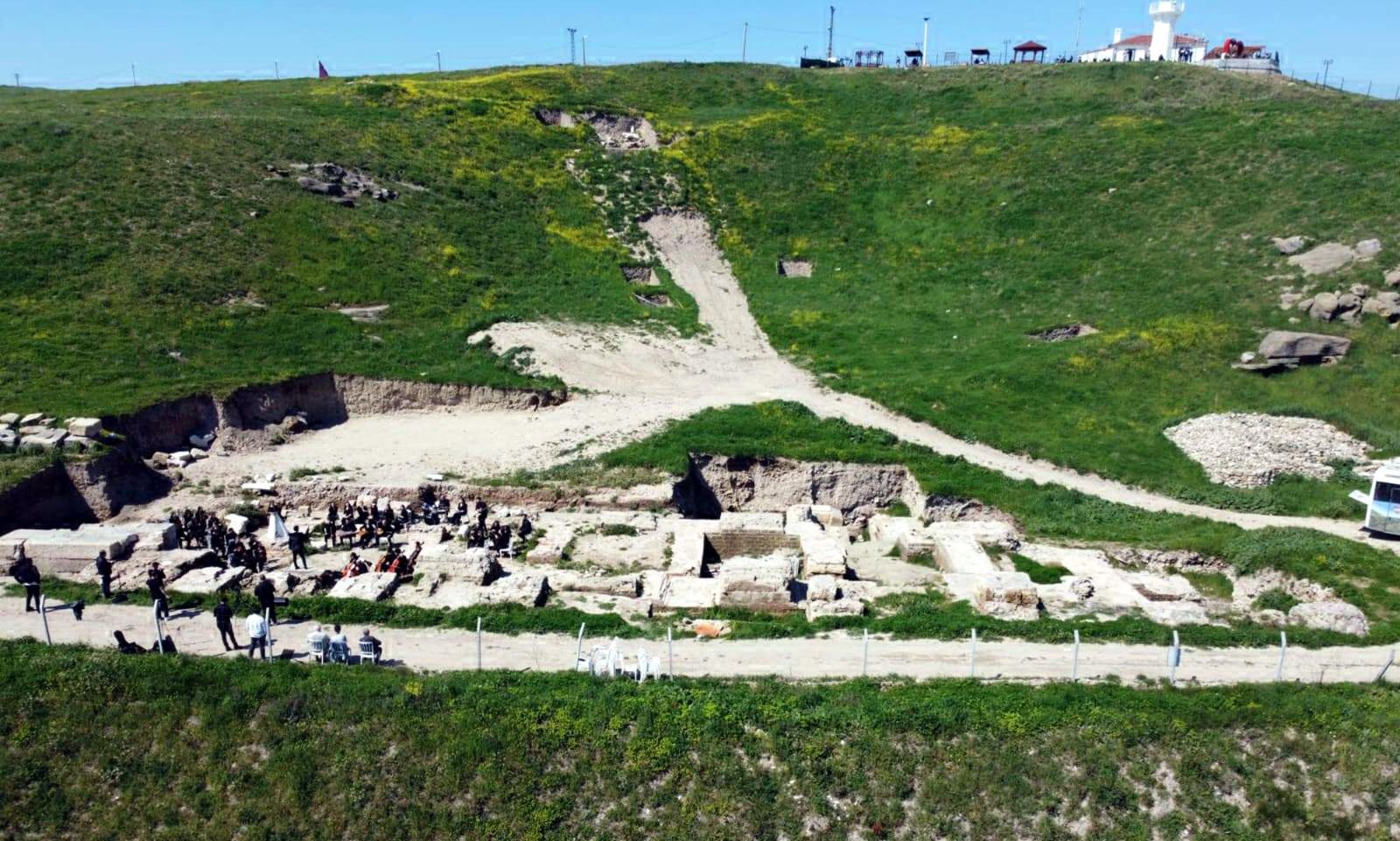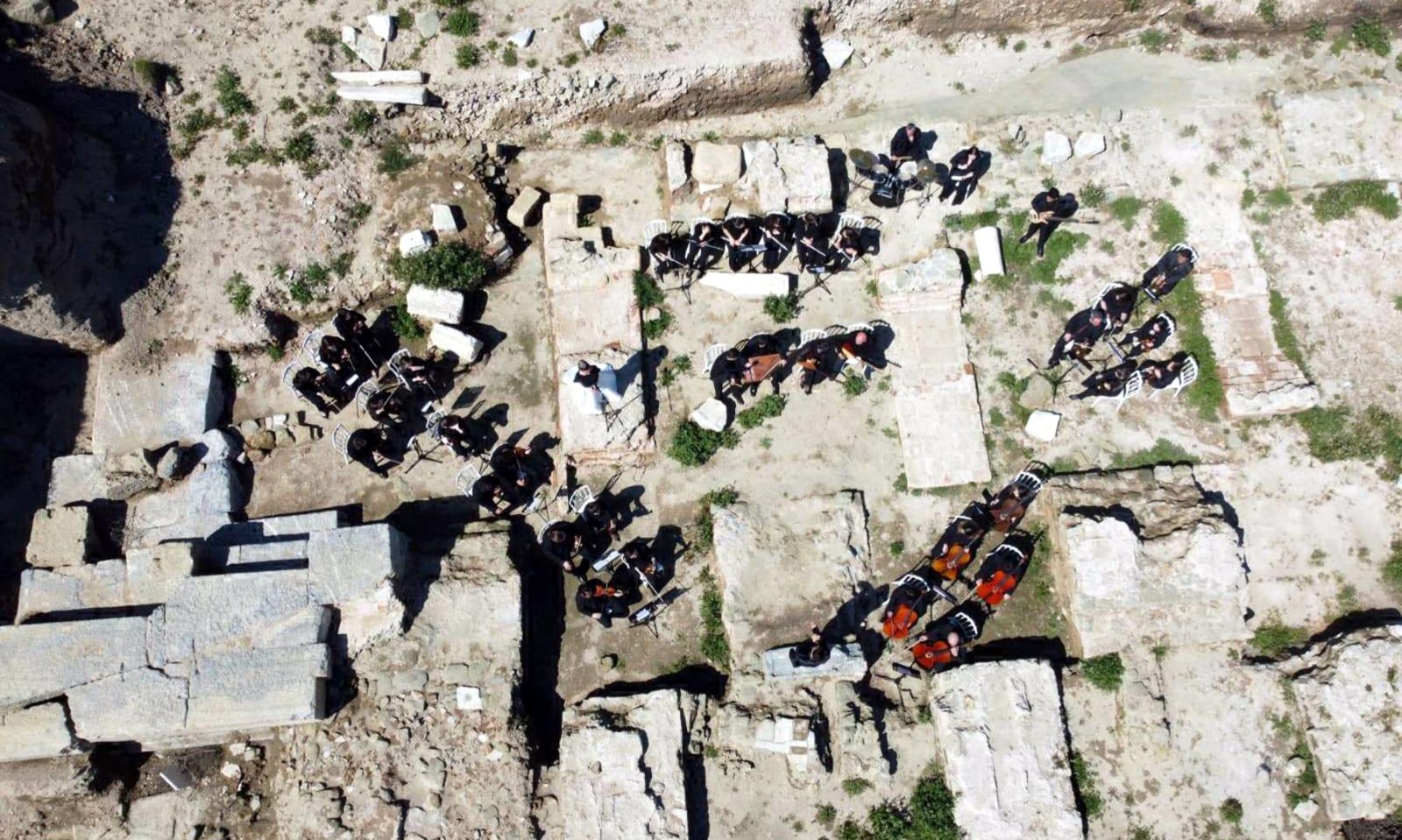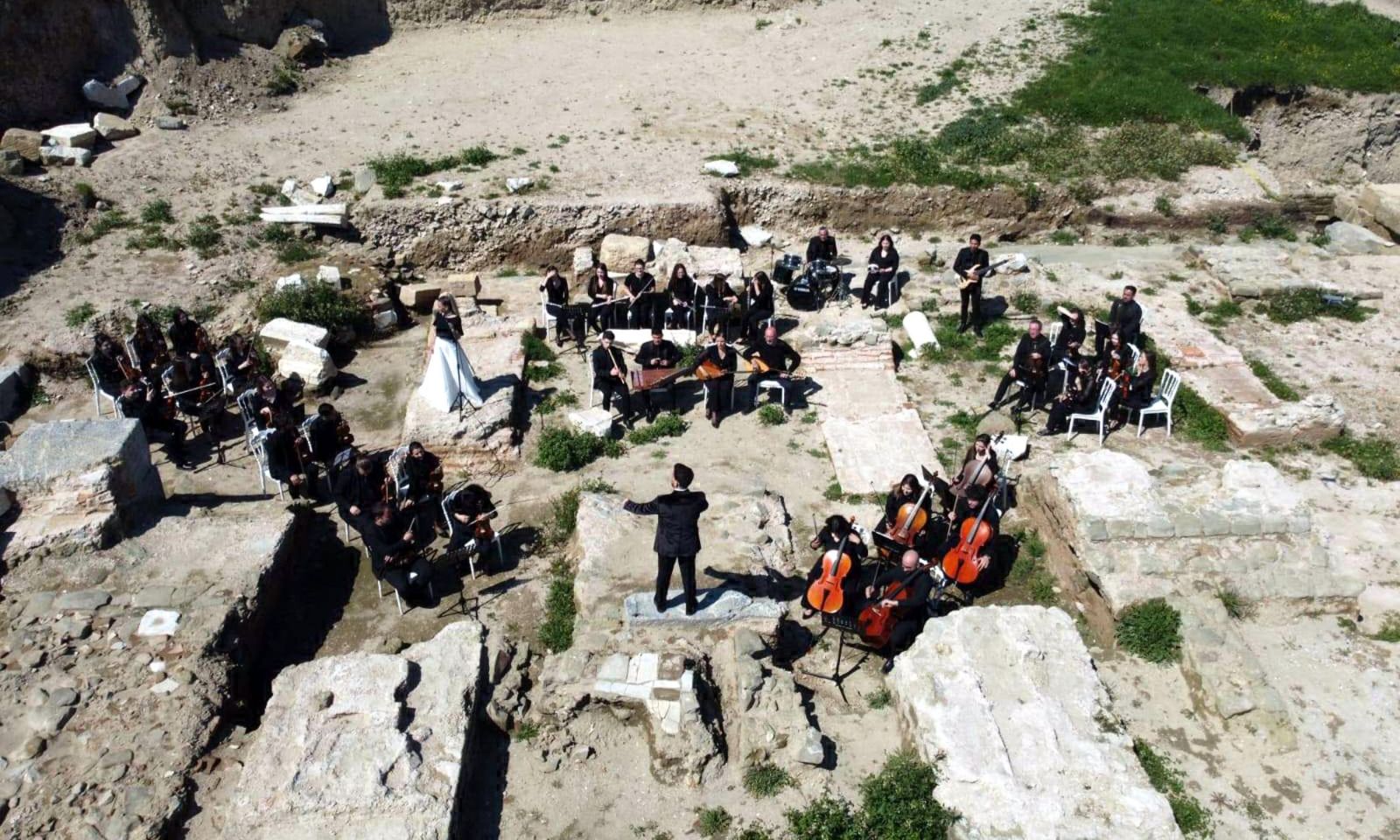 Koronun koordinatörü ve etkinlikte solist olarak yer alan Neslihan Armağan ise “Yaklaşık 2 bin bin yıl öncesine kadar burada bir yaşam vardı. Bizler orkestramız, öğretmen ve öğrencilerimizle beraber Turizm Haftası kapsamında kültürü ve sanatı bir araya getirerek sanatımızı icra etmeye geldik. Böyle kıymetli, böyle değerli bir yerde olmaktan mutluluk duyuyoruz” ifadelerini kullandı