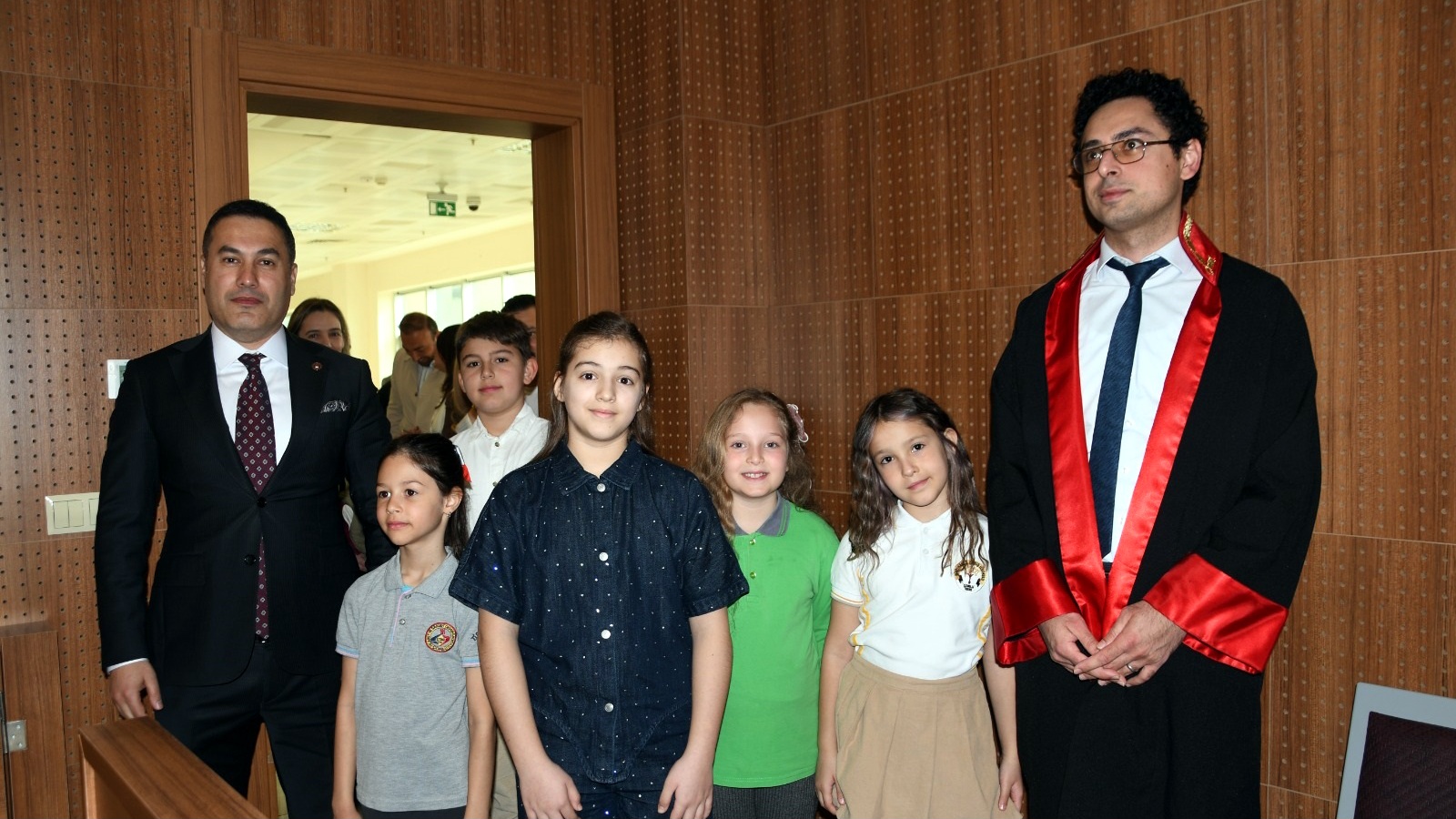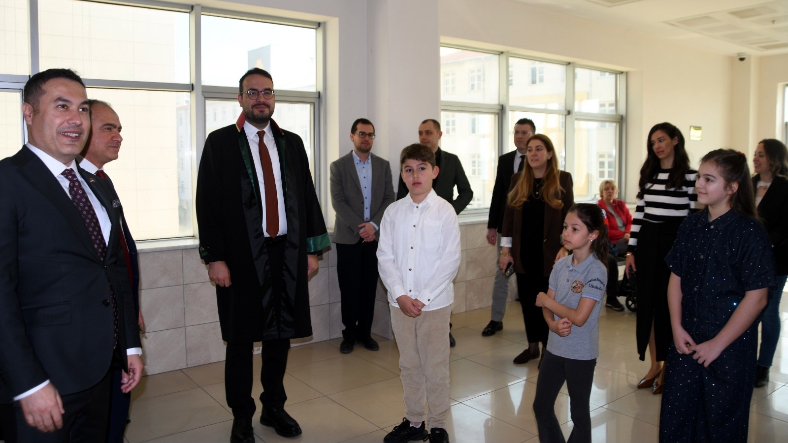 23 Nisan Ulusal Egemenlik ve Çocuk Bayramı etkinlikleri kapsamında öğrenciler, Çorlu Adliyesi’nde Adalet Komisyonu Başkanı Erhan Obut’u makamında ziyaret etti. Ziyarette çocuklarla yakından ilgilenen Obut, sohbet ederek merak ettikleri soruları cevapladı.