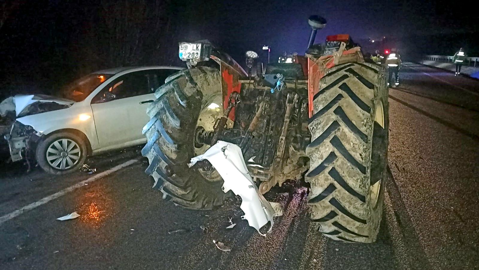 Kazada, traktör sürücüsü Hasan Alparslan Yuvarlak ile traktörde bulunan Ömer Faruk Kasımfırtına (22) yaralandı. İhbar üzerine kaza yerine sağlık, polis ve jandarma ekipleri sevk edildi.