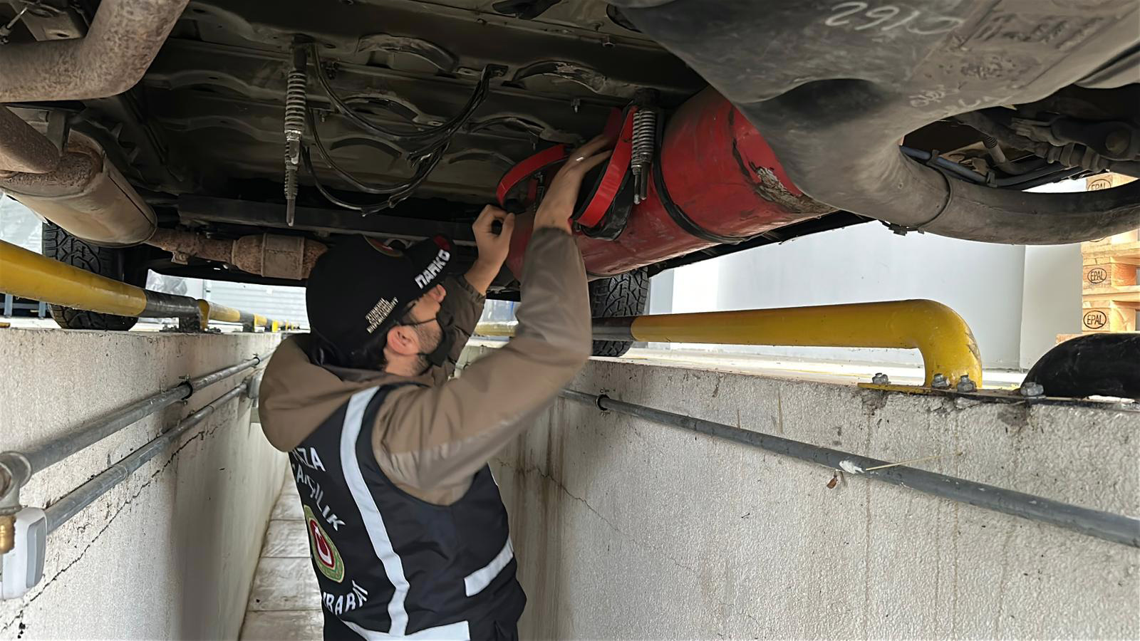 Yapılan taramada otomobilin altındaki LPG tanklarında şüpheli yoğunluk tespit edildi.