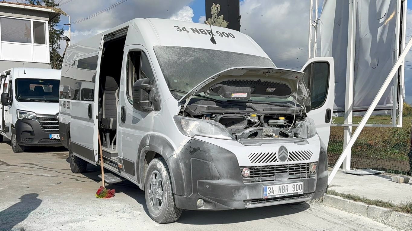 Çıkış nedeni bilinmeyen yangında, park halindeki bir servis minibüsünden dumanlar çıkmaya başladı.